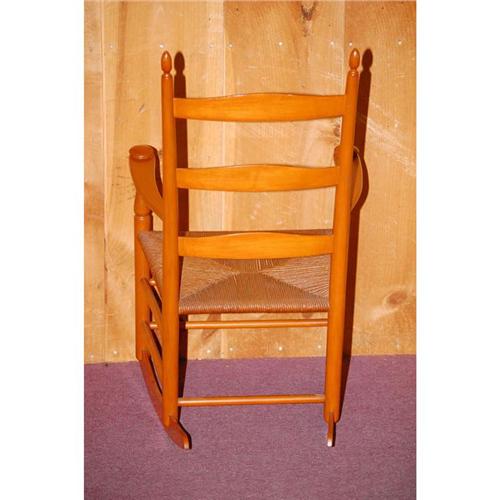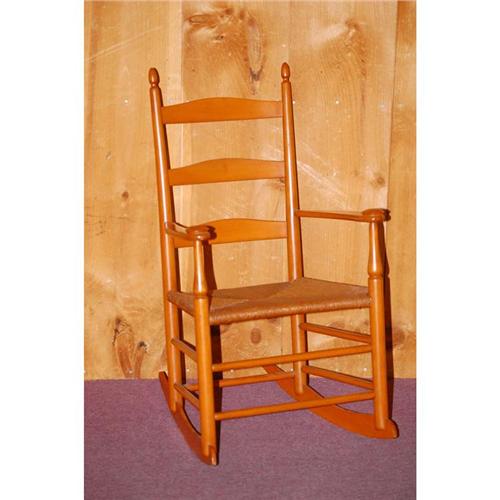 SHAKER NO. 3 ROCKING CHAIR - MAPLE LADDERBACK ROCKING ARM CHAIR W/ 3 SHAPED RUNGS, FINIALS & ARMS W/ CAPS & CRAFT PAPER SEAT-SIGNED ON ROCKER SHAKER NO. 3 MT. LEBANON (34 1/2" T X 25" W X 23 1/2" D) - REFINISHED IN 1947, LIGHT WEAR, IMPERFECTIONS