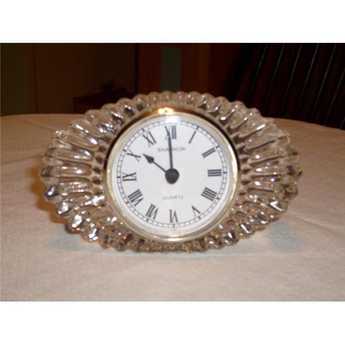SHONNON CRYSTAL CLOCKDESIGN IN IRELAND. HAS A OVAL SHAPE THE CLOCK IS IN GREAT SHAPE.