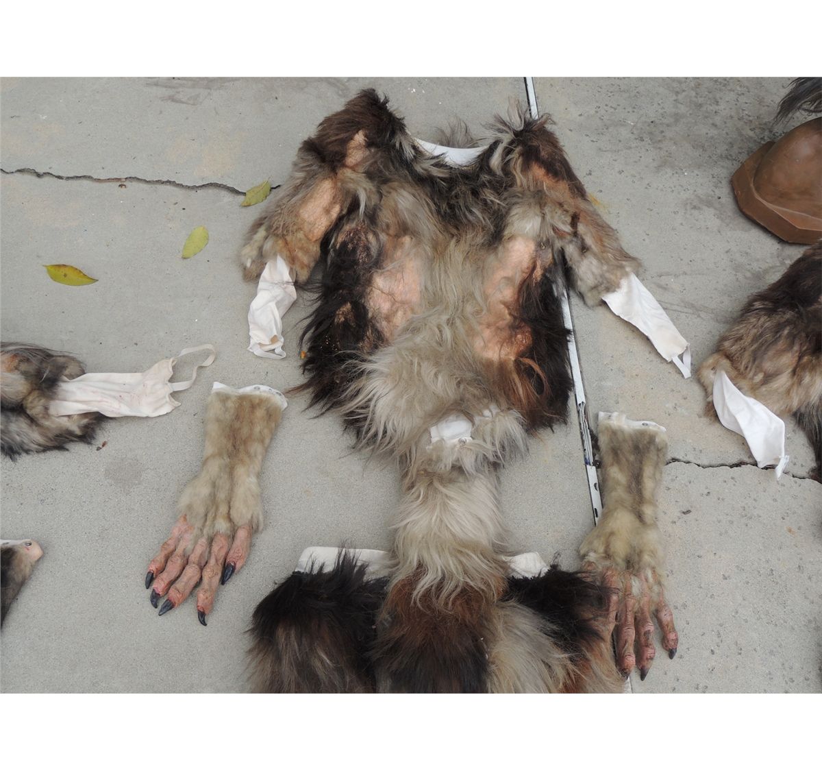 This is 1 of 5 werewolf costumes made for a move called SHAPE SHIFTERS that was never made. These were never worn, or used, which never happens as suits like this are always rented, and worn out into submission. Each is different, and some are more complete than others.