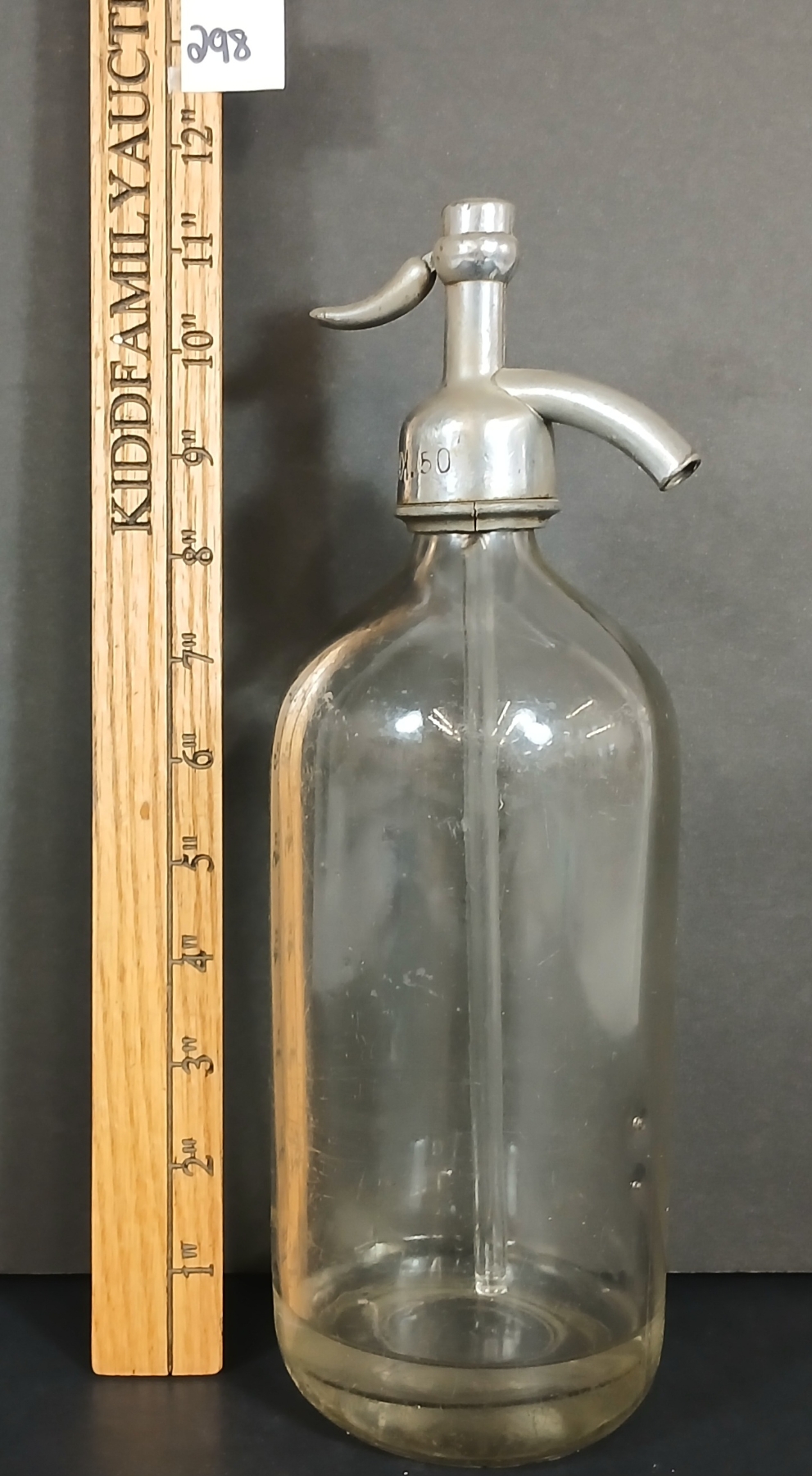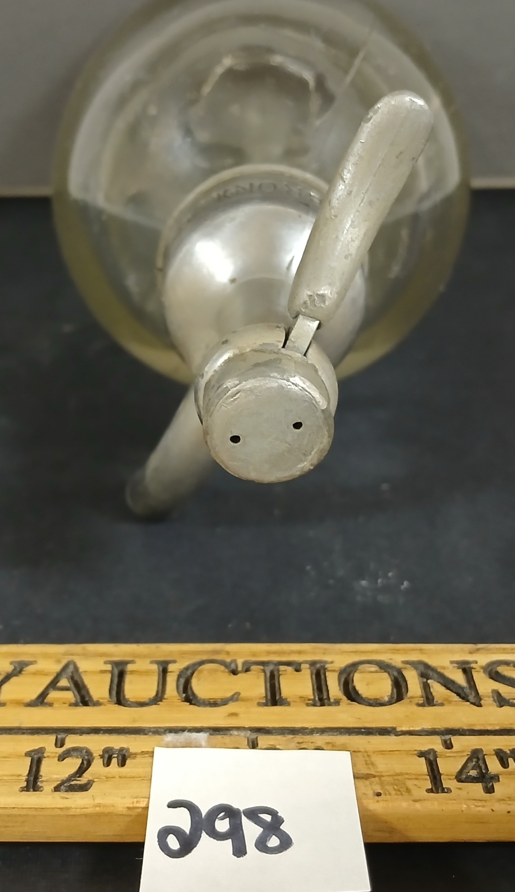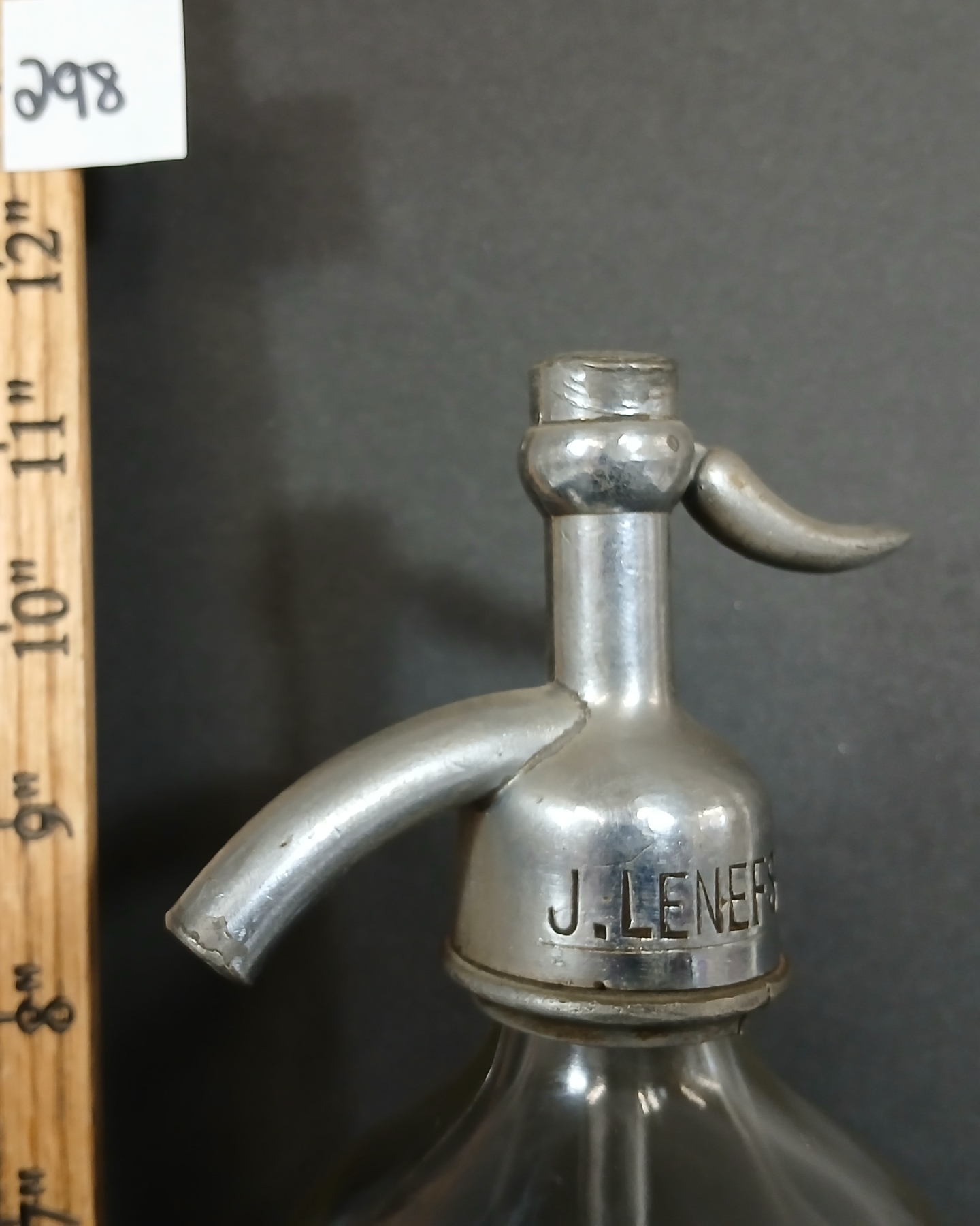 NOTE: MARKED MADE IN NEW YORK - SPIGOT MARKED J. LENEFSKY. BRONX. 50 - W/ SMALL QTY OF CONTENTS - CHIPPED BOTTOM