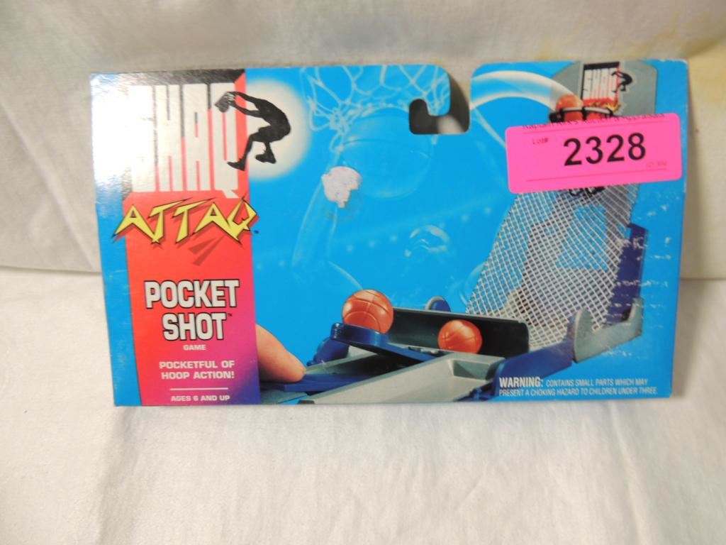 POCKET SHOT.. CHALLENGE YOURSELF OR PLAY WITH FRIENDS! TEST YOUR SKILL AT THE FOUL LINE , TRY THREE POINTERS, GO FOR LONG BUCKETS YOU CHOOSE THE SHOT. WHEN THE GAME IS OVER CLOSE IT AND ITS READY TO GO. POCKETFUL OF HOOP ACTION. AS SHOWN SEE PHOTO FOR MORE DETAILS.