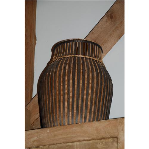 “Ankara Number 110 Basket; 1994”: Basketry-woven in raffia and overlaid with radiating blackwood strips.