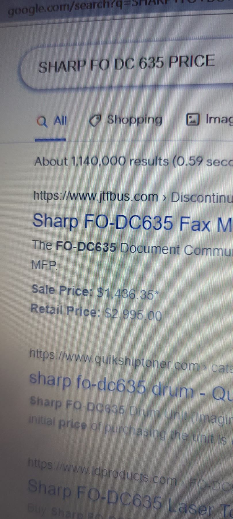 SHARP DC 635 TELECOMUNICATION PRINTER, FAX MACHINE WORKS