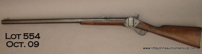 SHARPS Model 1874 “Old Reliable” # 158075, 45/70  cal., 30” heavy octagon barrel has been sleeved,  set triggers.  Rifle is in fair to good condition  showing pitting on the side plate.  Finish has  drifted to a nice patina. Factory Letter indicates 45 caliber, 2 1/10" shell, 30" octagon barrel, double triggers, open sights, oil finished stocks, weight 11 3/4 lbs, shipped to B. Kittredge and Co, Cincinnati, OH on August 20, 1877. Est. $2000-$4000.