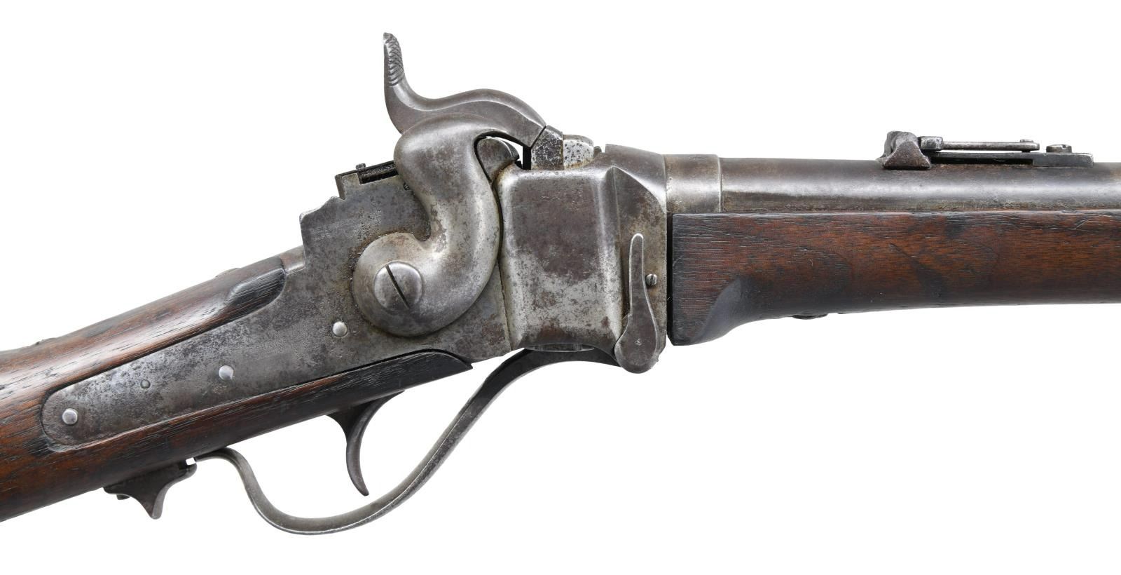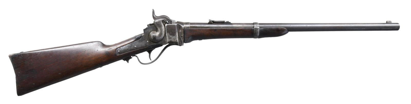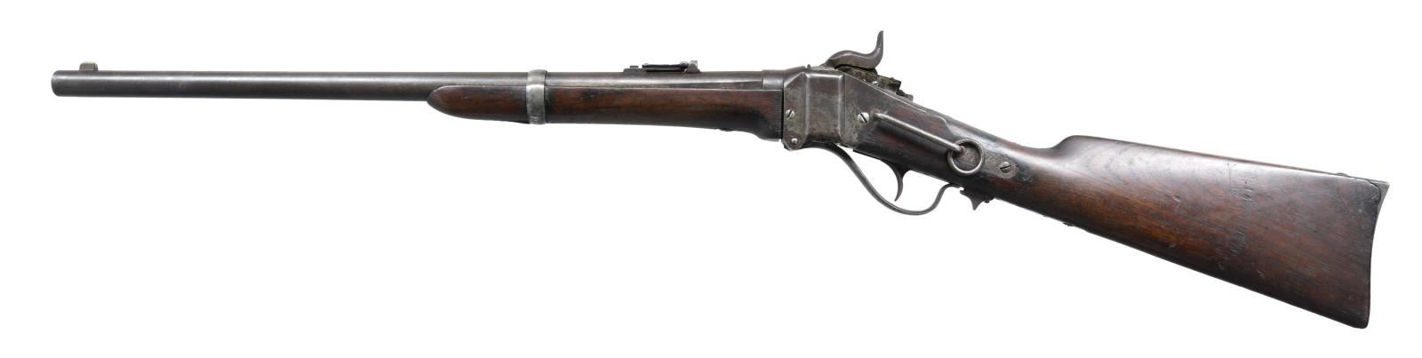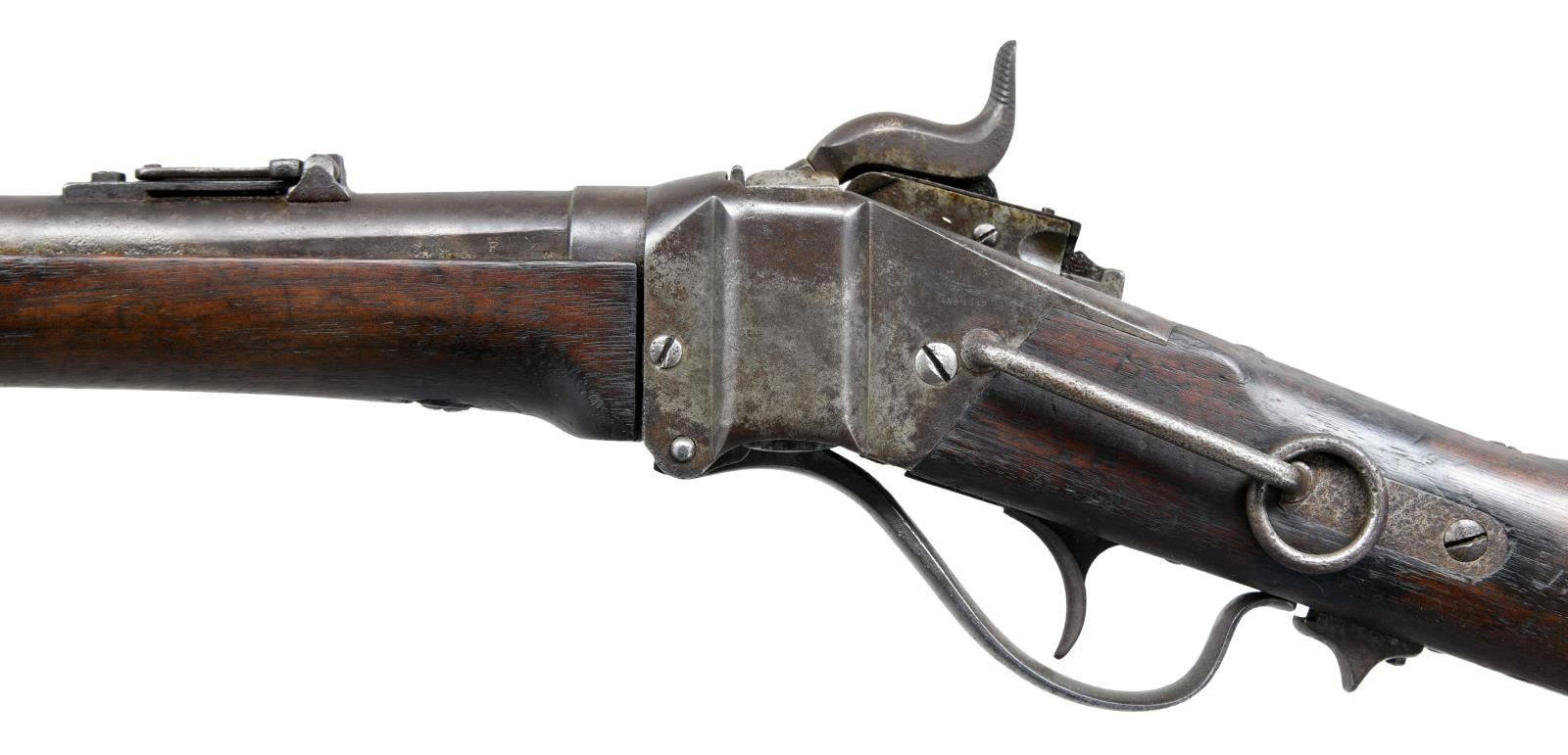 CONVERSION SRC. CAL. 50-70. S# 72133. After the Civil War the US Gov't contracted the Sharps Rifle Mfg Co to convert the military percussion arms to metallic cartridge breechloaders. This example was converted with a cam style firing pin and lined 3 groove 22" bbl. Fitted with a walnut stock set without patchbox. CONDITION: Metal surfaces have faded to a dark patina that is mottled in areas. Stock has scattered handling marks with some heavier impressions. Some spots of heavier old oxidation present, with the heaviest being on the buttplate. Good lightly frosted bore with distinct rifling. Crisp mechanics. (01-23338/ZAL) ANTIQUE $1500-2250