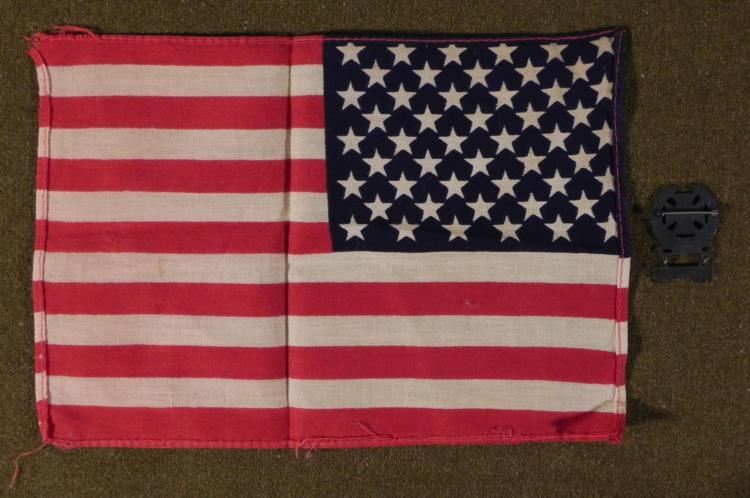 OFFERED HERE IS A SHARPSHOOTERS BADGE WITH AUTO RIFLE BAR (BOTH STERLING) + US.SMALL FLAG.