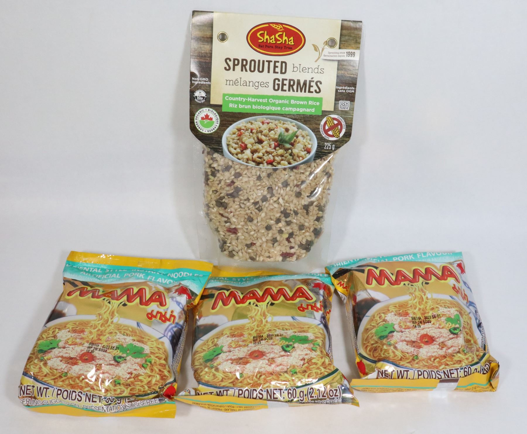 225G BAG (NO VISIBLE BEST BEFORE DATE) SOLD WITH MAMA PORK FLAVORED ORIENTAL NOODLES (3 PKS 60G EACH BEST BEFORE DATE SEPTEMBER 1 2023)