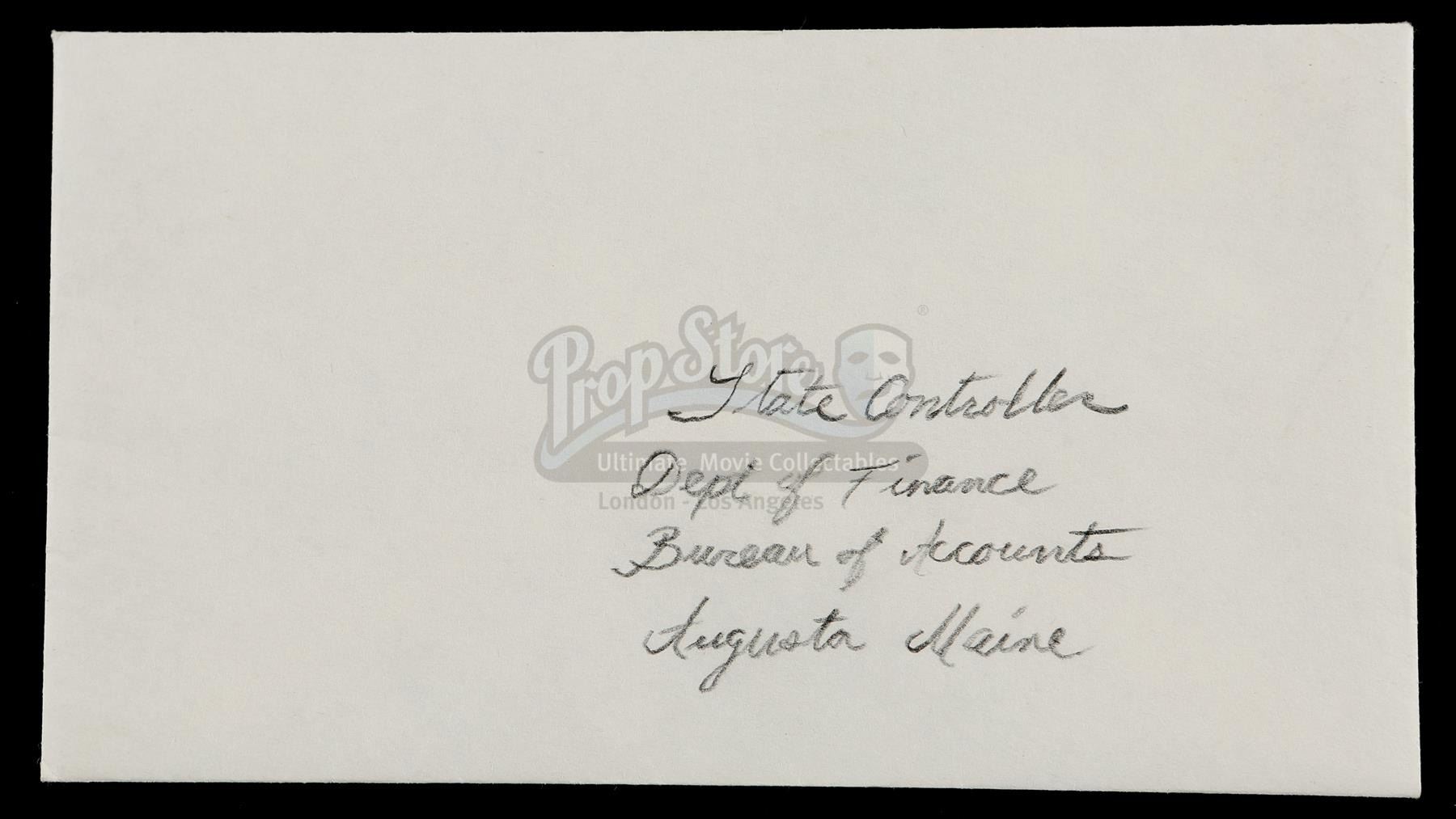 The lot, which differs to the final version seen on screen, includes the addressed envelope, written in pencil, and Andy's letter, written in ink on lined paper, folded inside the envelope. The lot shows some wear from production use, but remains in very good condition. Dimensions: 15 cm x 8 cm x 1 cm (6'' x 3'' x 1/4'')