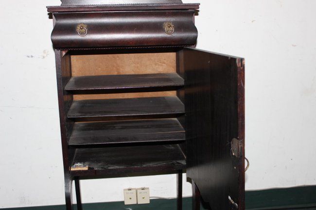 SHEET MUSIC CABINET IN MAHOGANY WOOD 4 SHELVES AND 1 DRAWER - 41 X 19 X 13.5