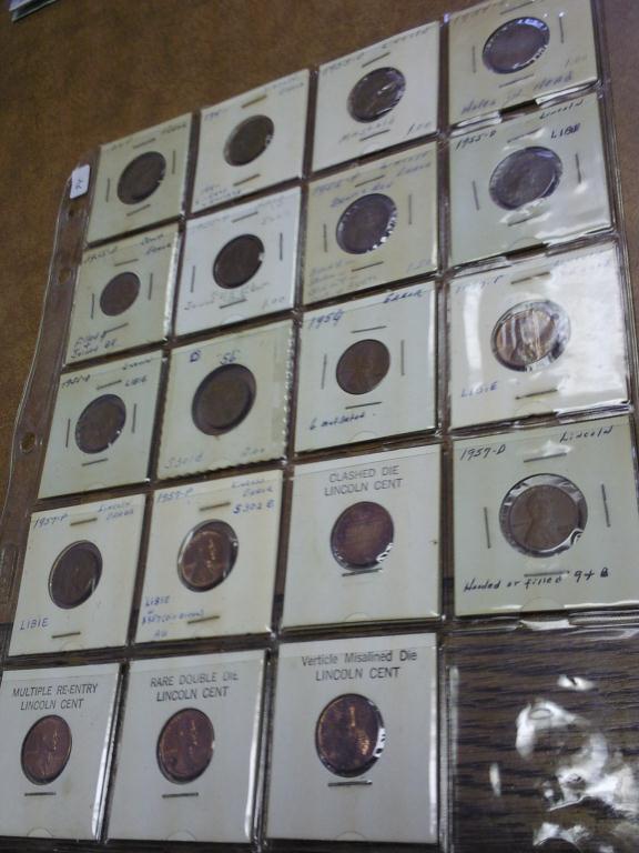 SHEET OF 19 ERROR LINCOLN CENTS (AS SHOWN)