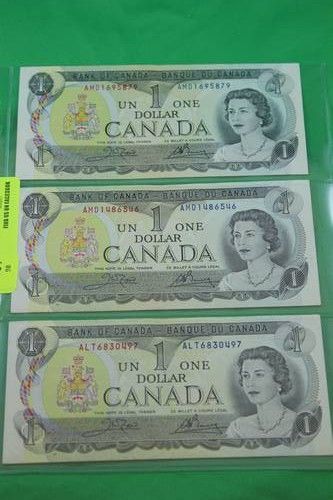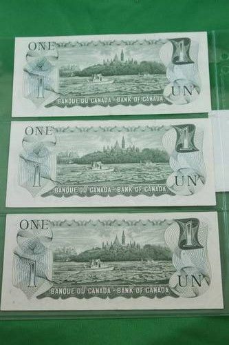 SHEET OF 3 1973 CANADIAN $1 BILLS UNCIRCULATED