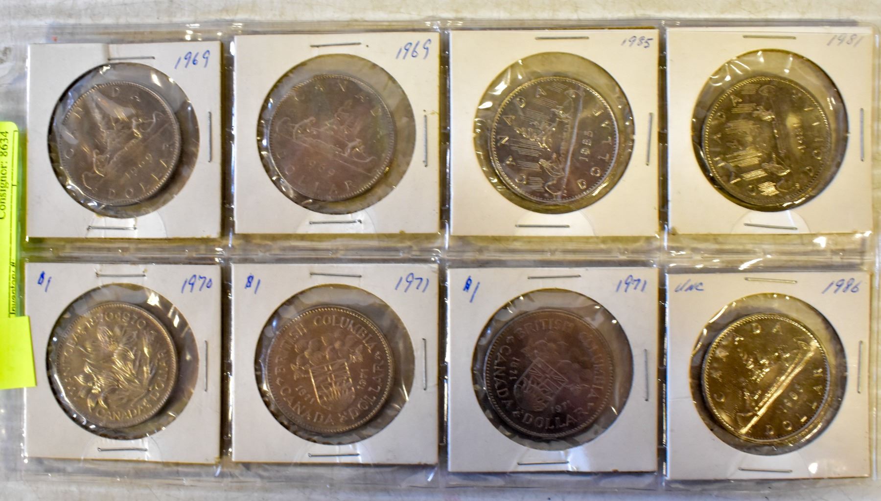 SHEET OF 8 CANADIAN ONE DOLLAR COINS
