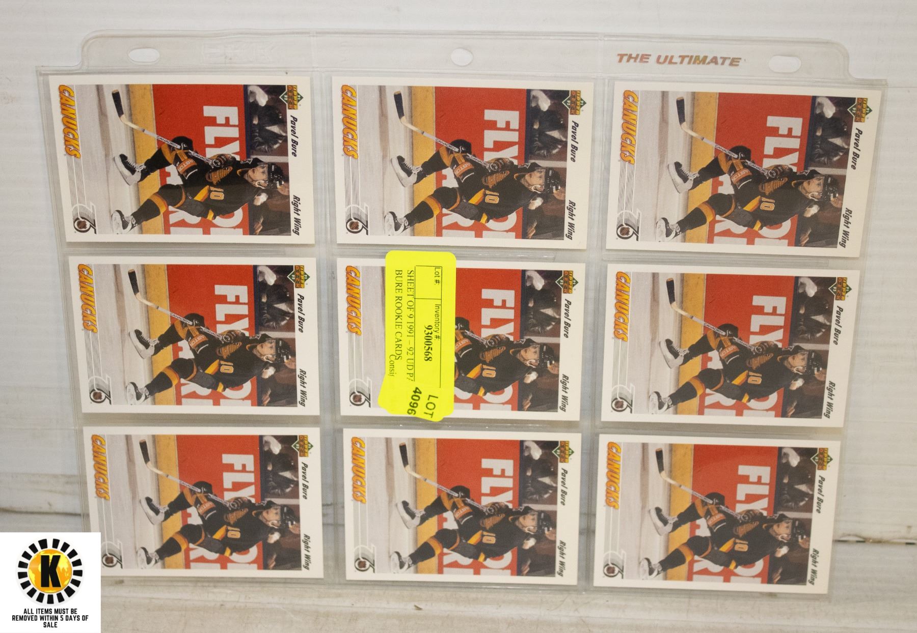 SHEET OF 9 1991 – 92 UD PAVEL BURE ROOKIE CARDS