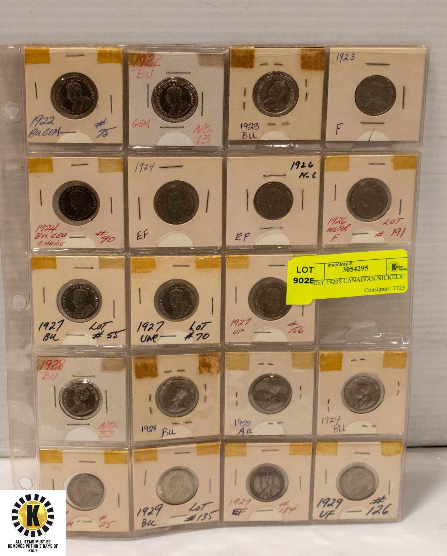 SHEET OF CIRCA 1920'S CANADIAN NICKELS