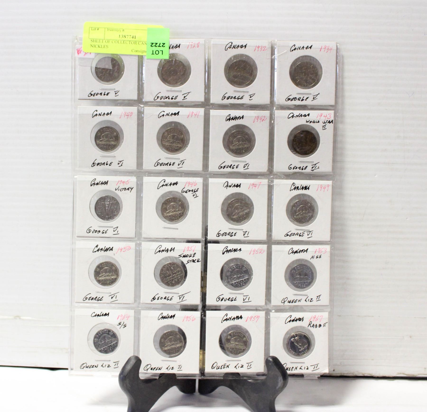 SHEET OF COLLECTOR CANADIAN NICKLES