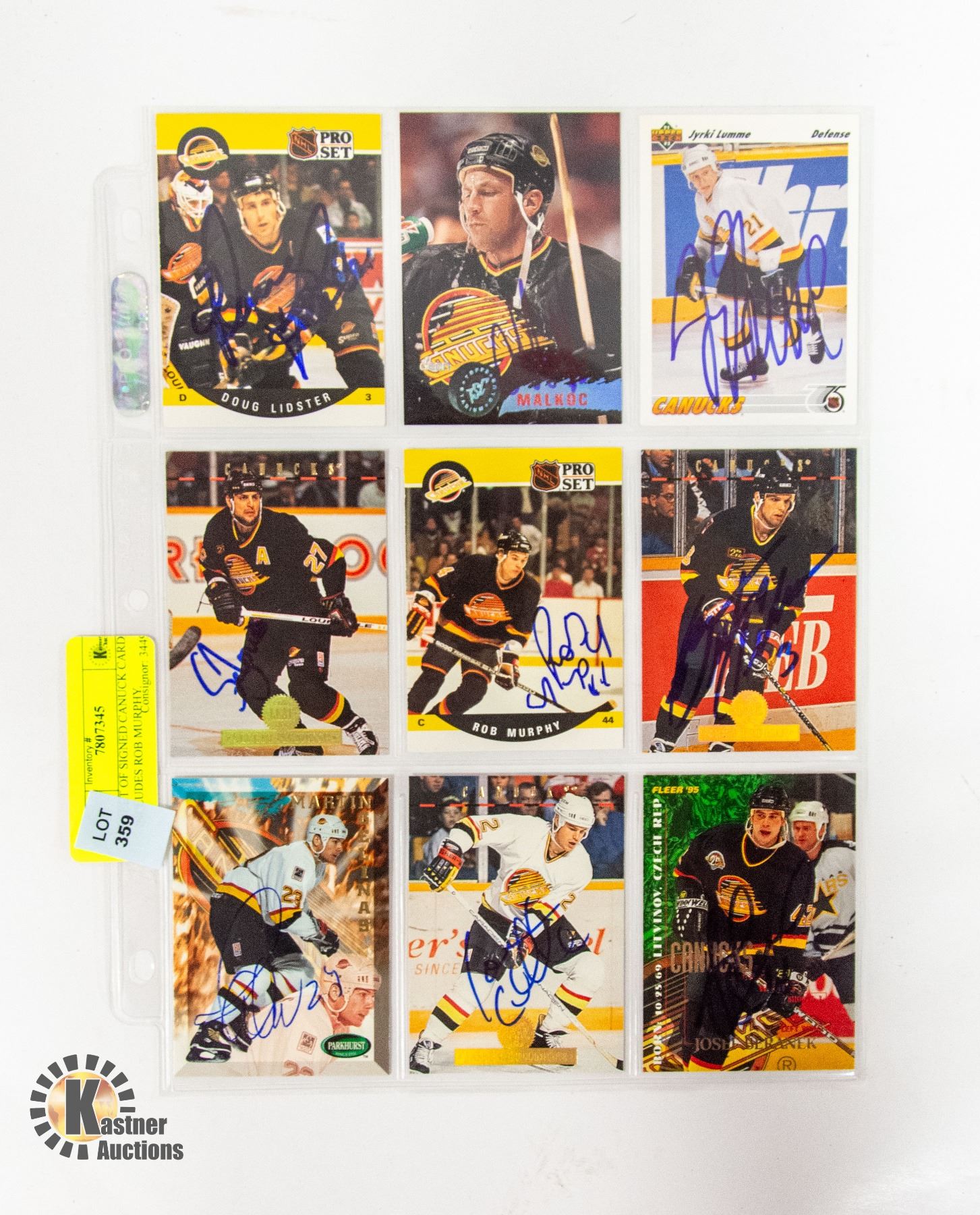 SHEET OF SIGNED CANUCK CARDS INCLUDES ROB MURPHY