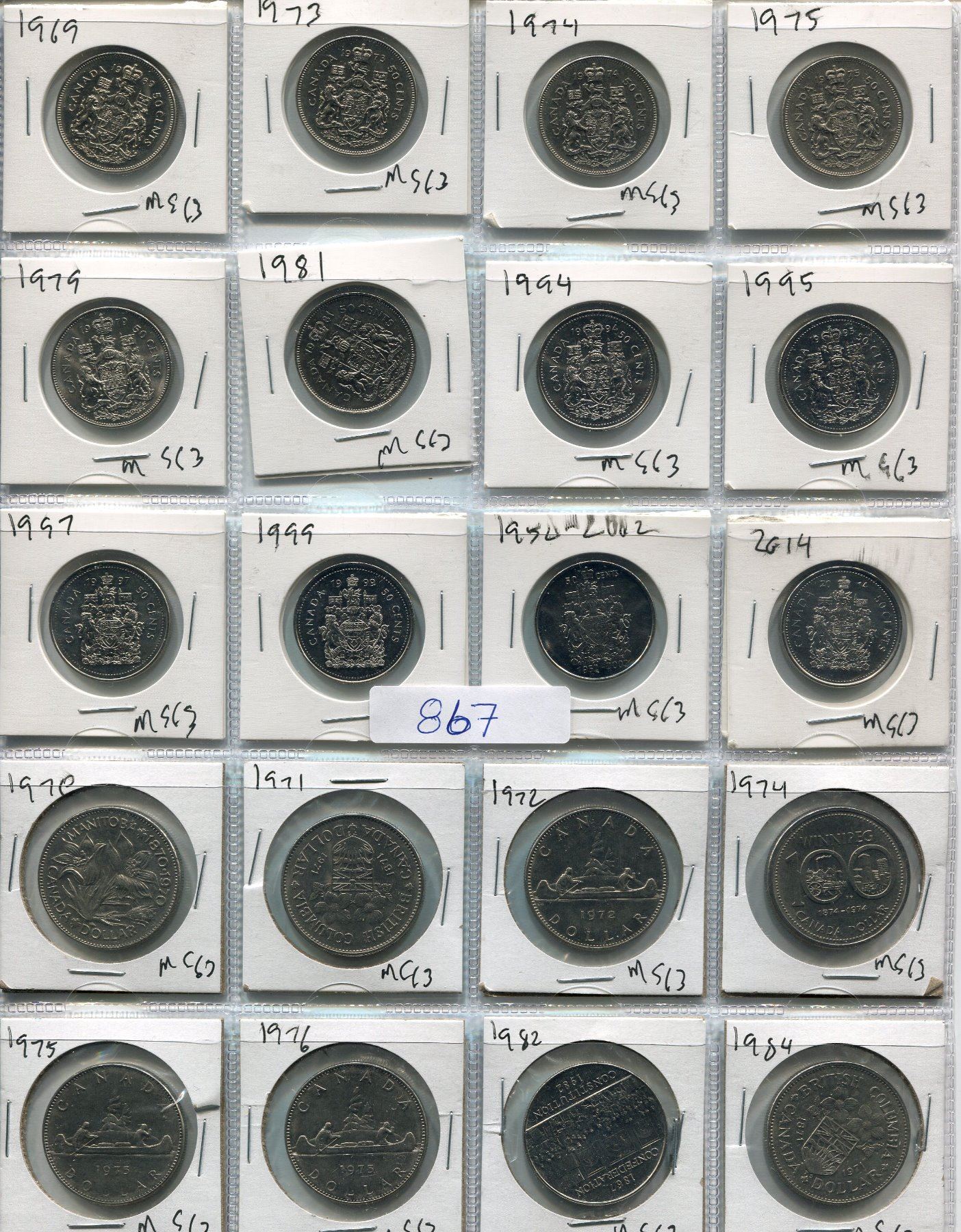 SHEET OF SILVER DOLLARS AND HALF DOLLARS (1969-1982) *CDN*