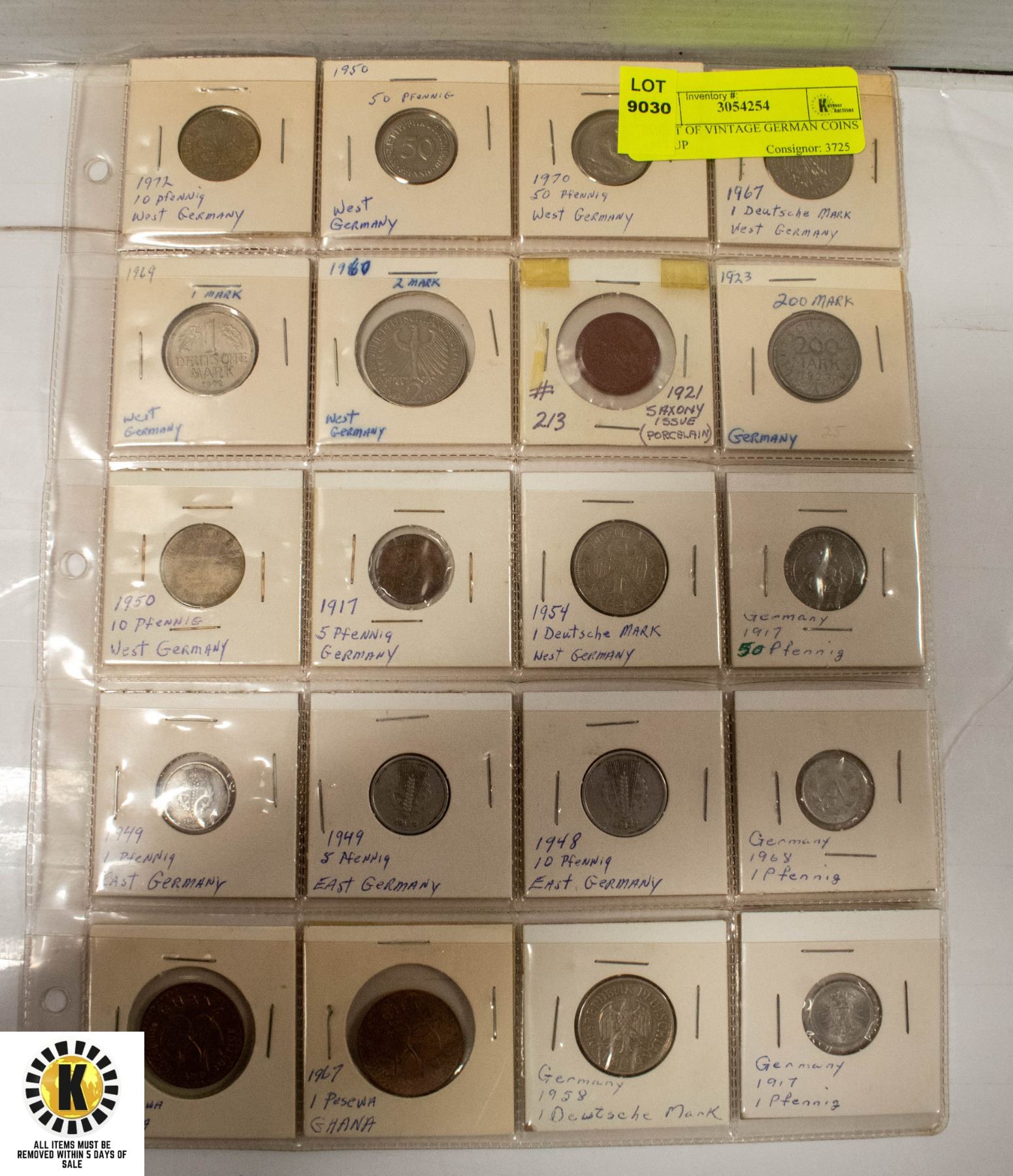 SHEET OF VINTAGE GERMAN COINS 1917 AND UP
