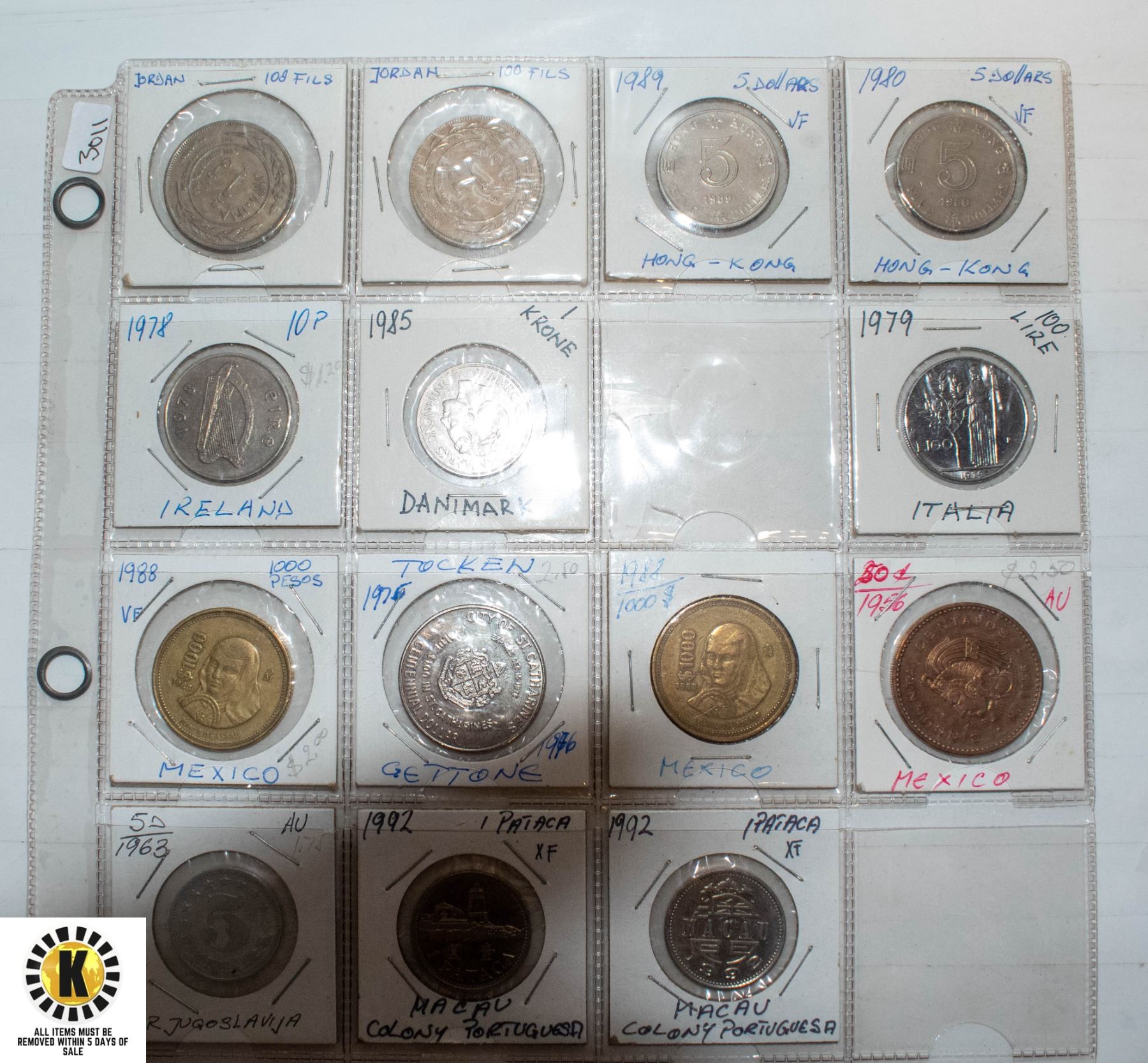 SHEET WITH COLLECTOR COINS