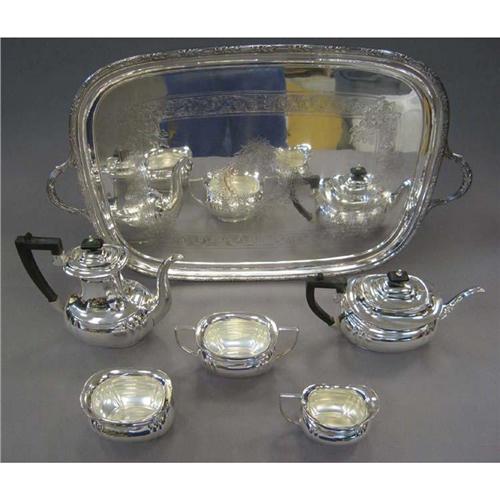 SHEFFIELD PLATE TEA SERVICE with serving tray retailed at Gumps