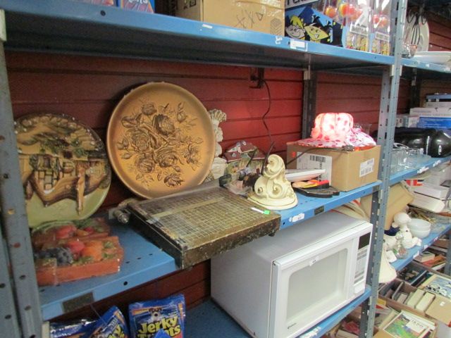 SHELF ASSORTED CHAULK WARE & COLLECTABLES & VINTAGE PAPER SLICER
