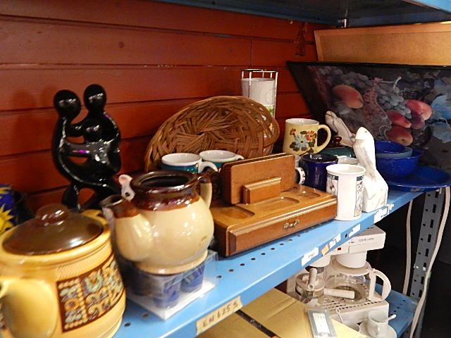 SHELF ASSORTED PICTURES & HOUSEHOLD