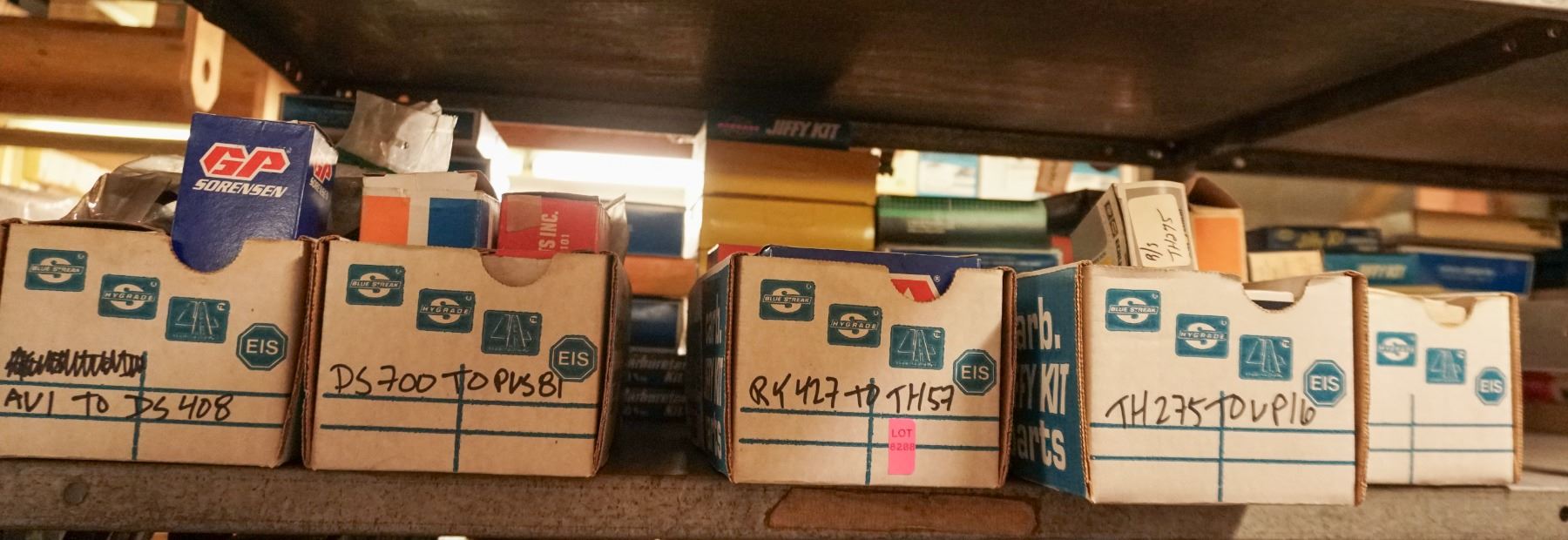 MIXED LOT OF NEW OLD STOCK IGNITION PARTS IN ORIGINAL BOXES. INCLUDES A VARIETY OF DISTRIBUTOR AND TUNE-UP COMPONENTS FROM MULTIPLE MANUFACTURERS.