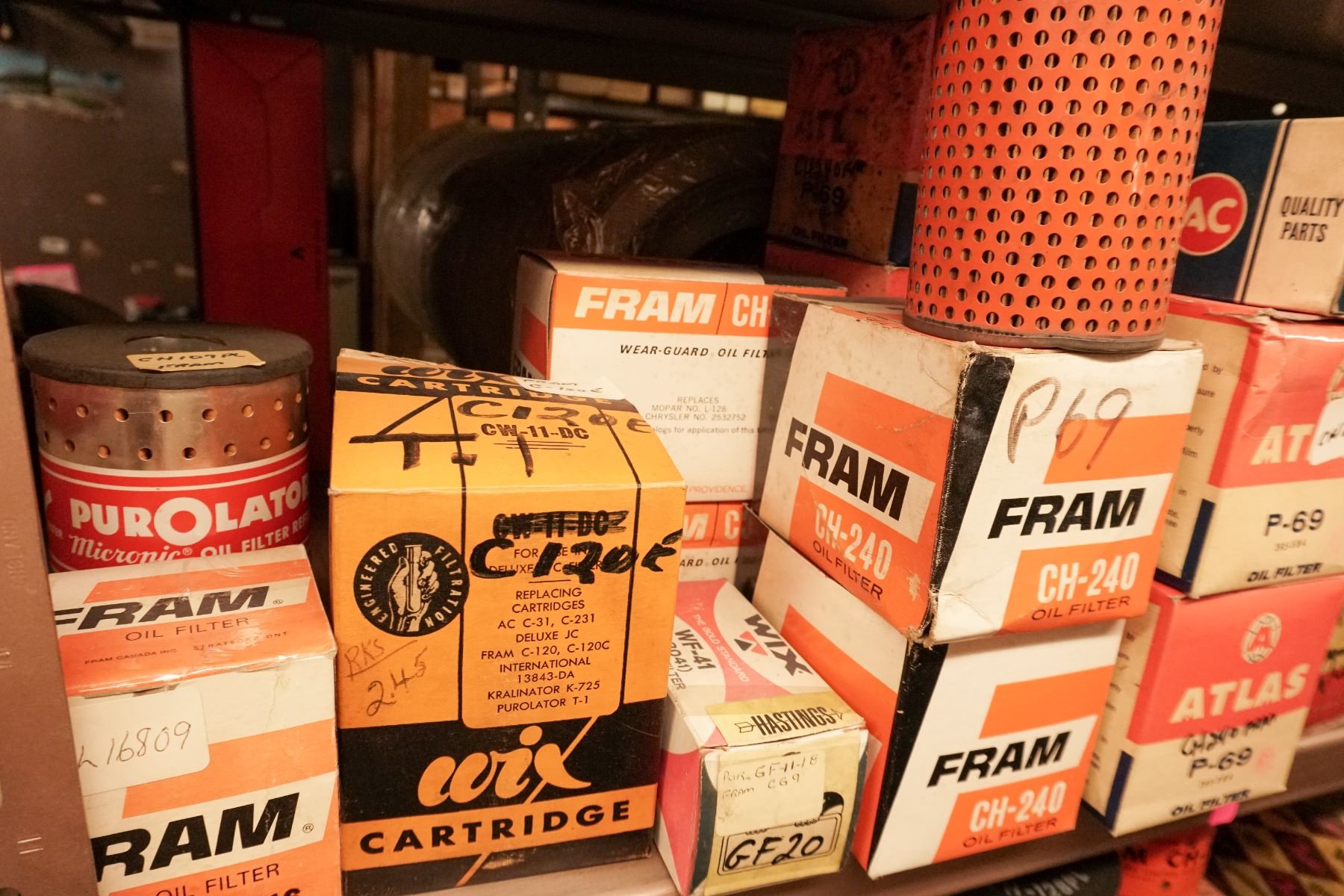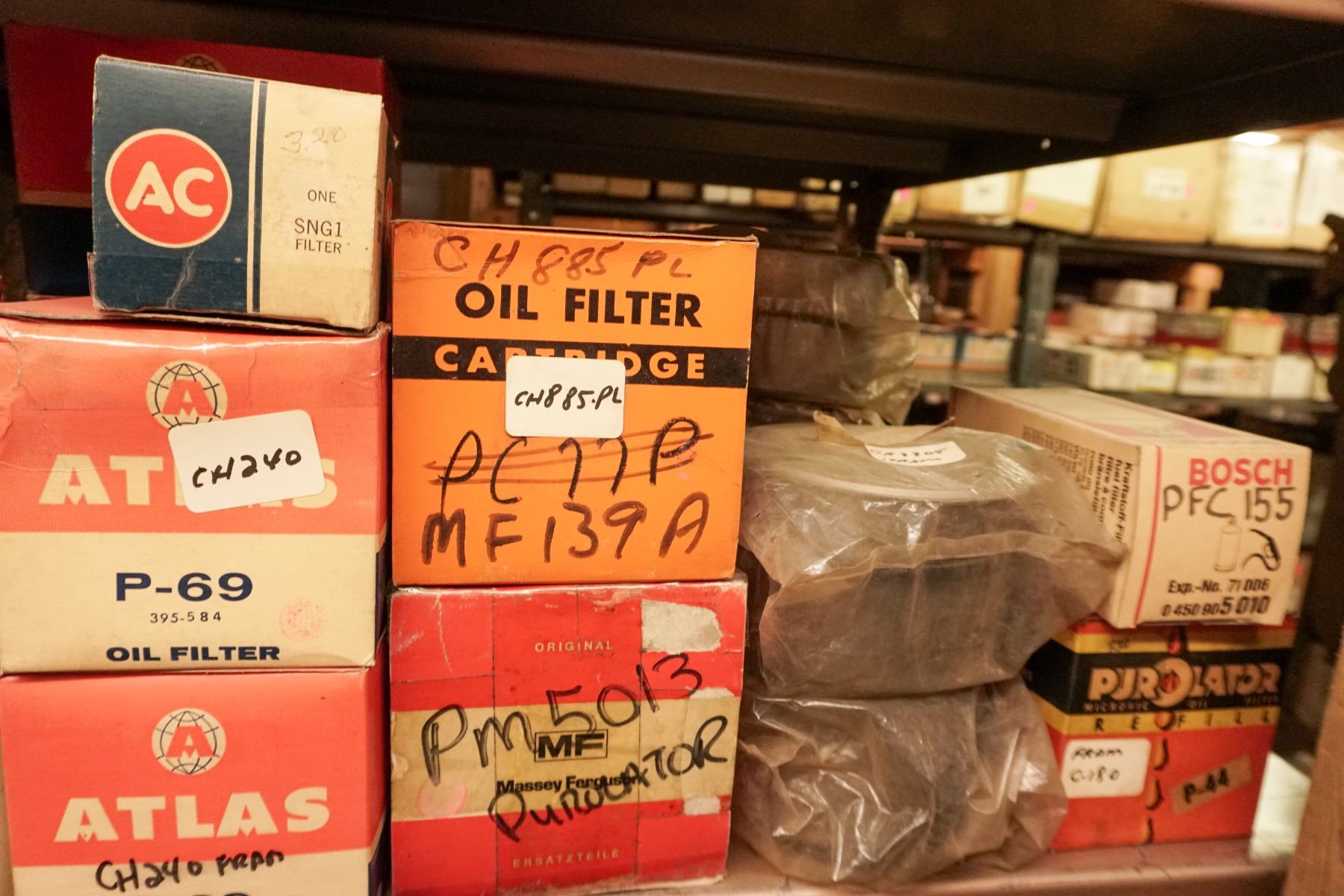 CONDITION: NEW OLD STOCK. FILTERS APPEAR UNUSED; SOME BOXES SHOW AGE, DUST, AND STORAGE WEAR.