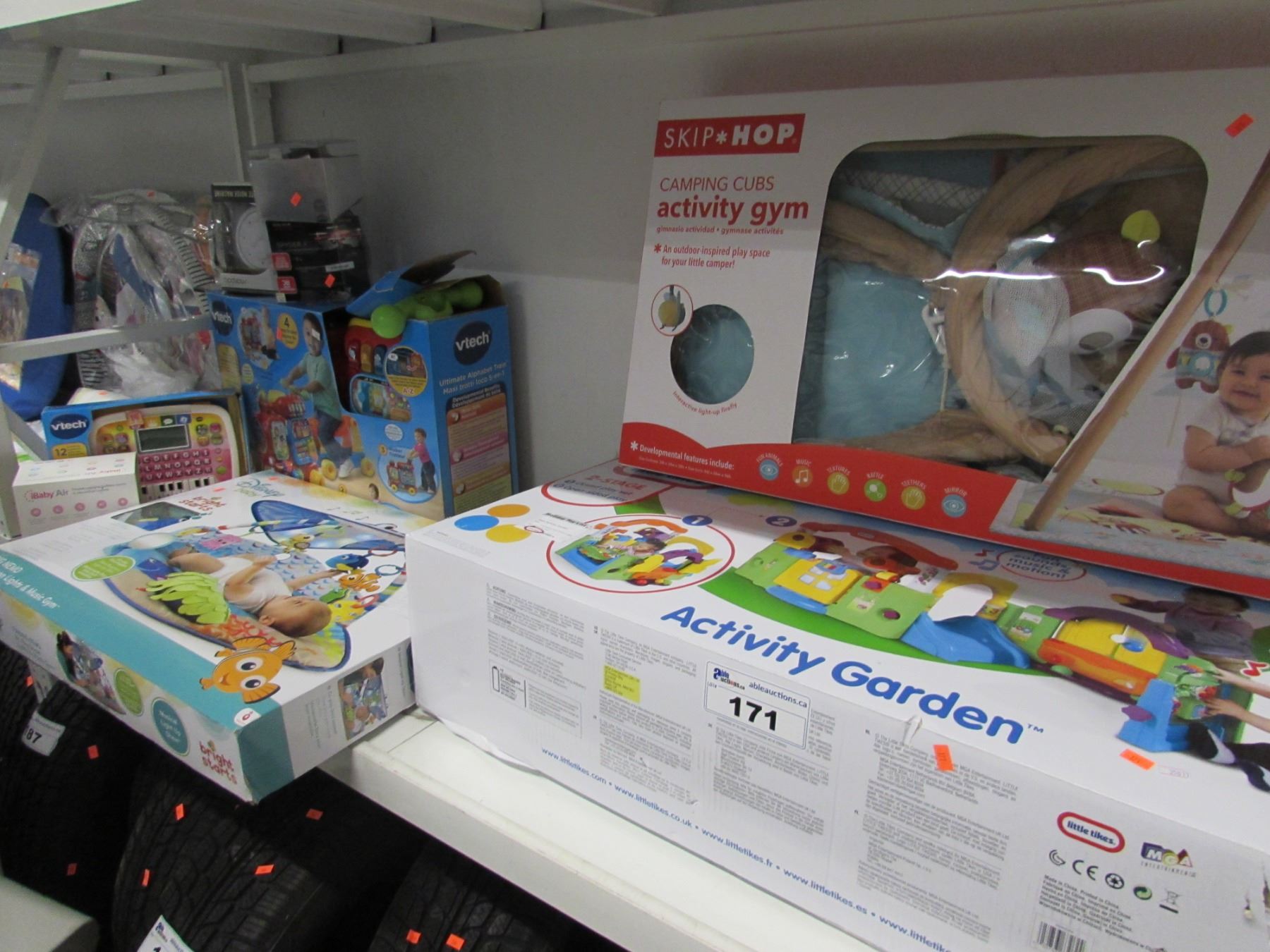 SHELF LOT OF ASSORTED BABY TOYS & PRODUCTS
