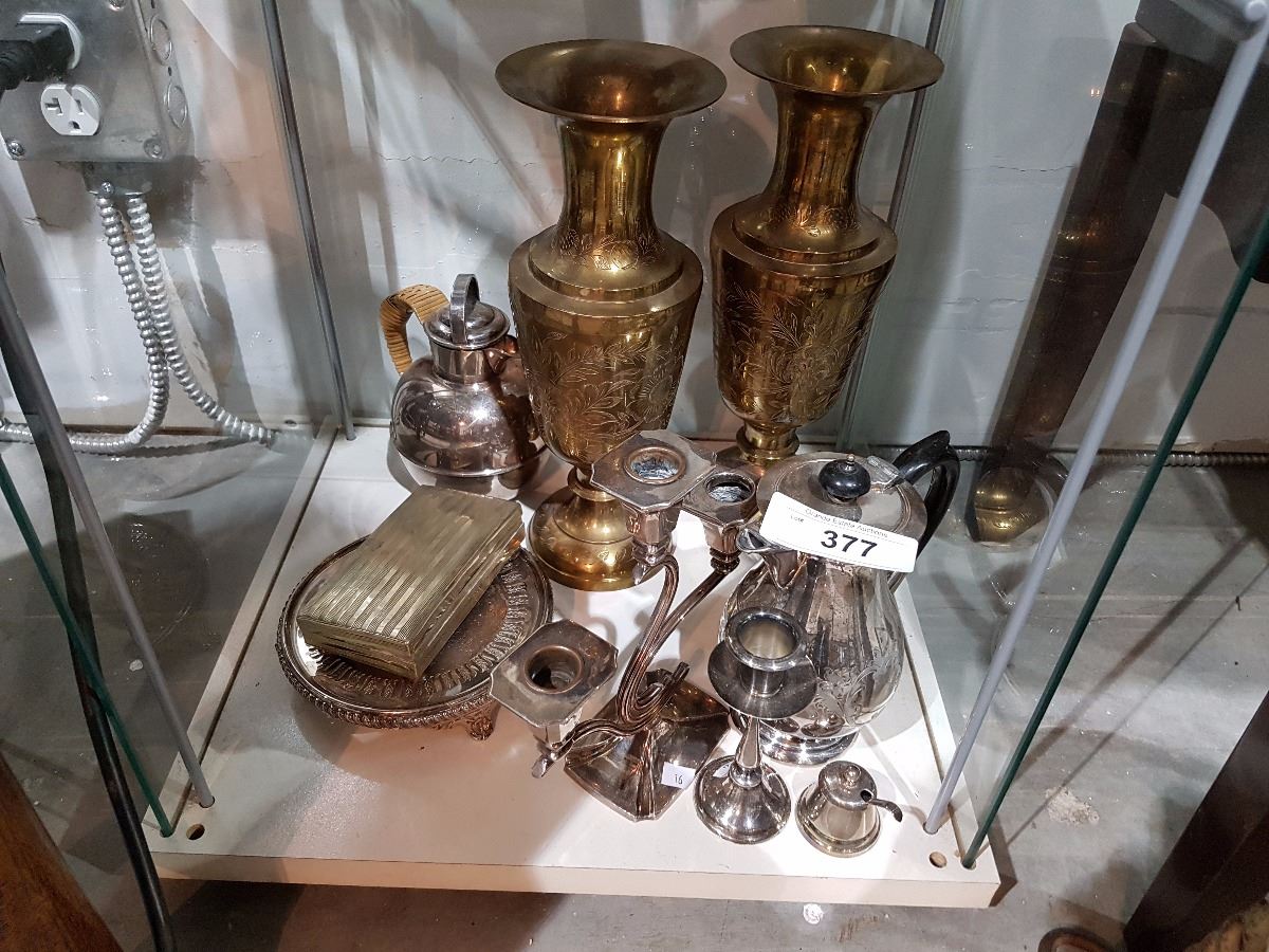 SHELF LOT OF BRASS & METAL COLLECTIBLES