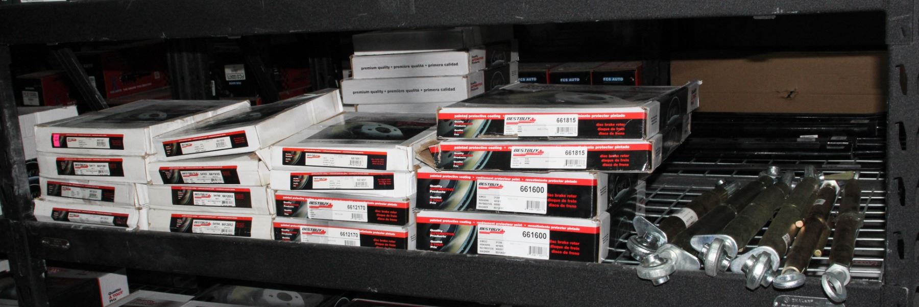 SHELF OF ASSORTED BRAKE ROTORS AND MORE