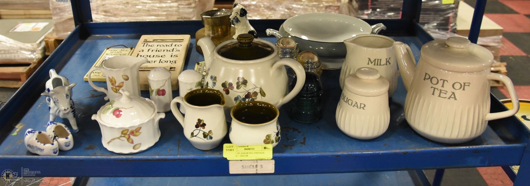 SHELF OF ASSORTED VINTAGE DISHES + DECOR