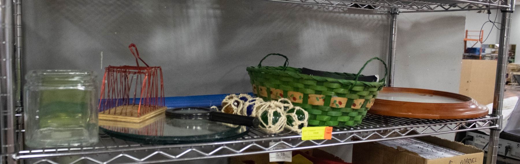 SHELF OF HOUSEHOLD MISC INCLUDES A CLOCK, MINI