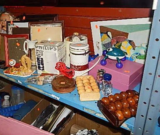 SHELF OF MASSAGERS, PICTURE FRAMED & MORE