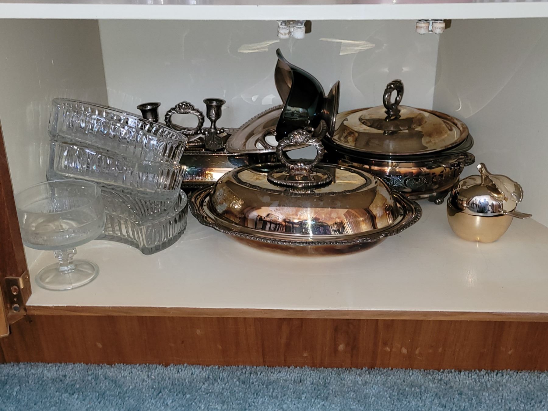 VARIOUS PIECES, MOSTLY PURCHASED FROM BIRKS IN THE 1960S. 4 PIECE MIKASA RELISH DISH SET WITH BOX INCLUDED