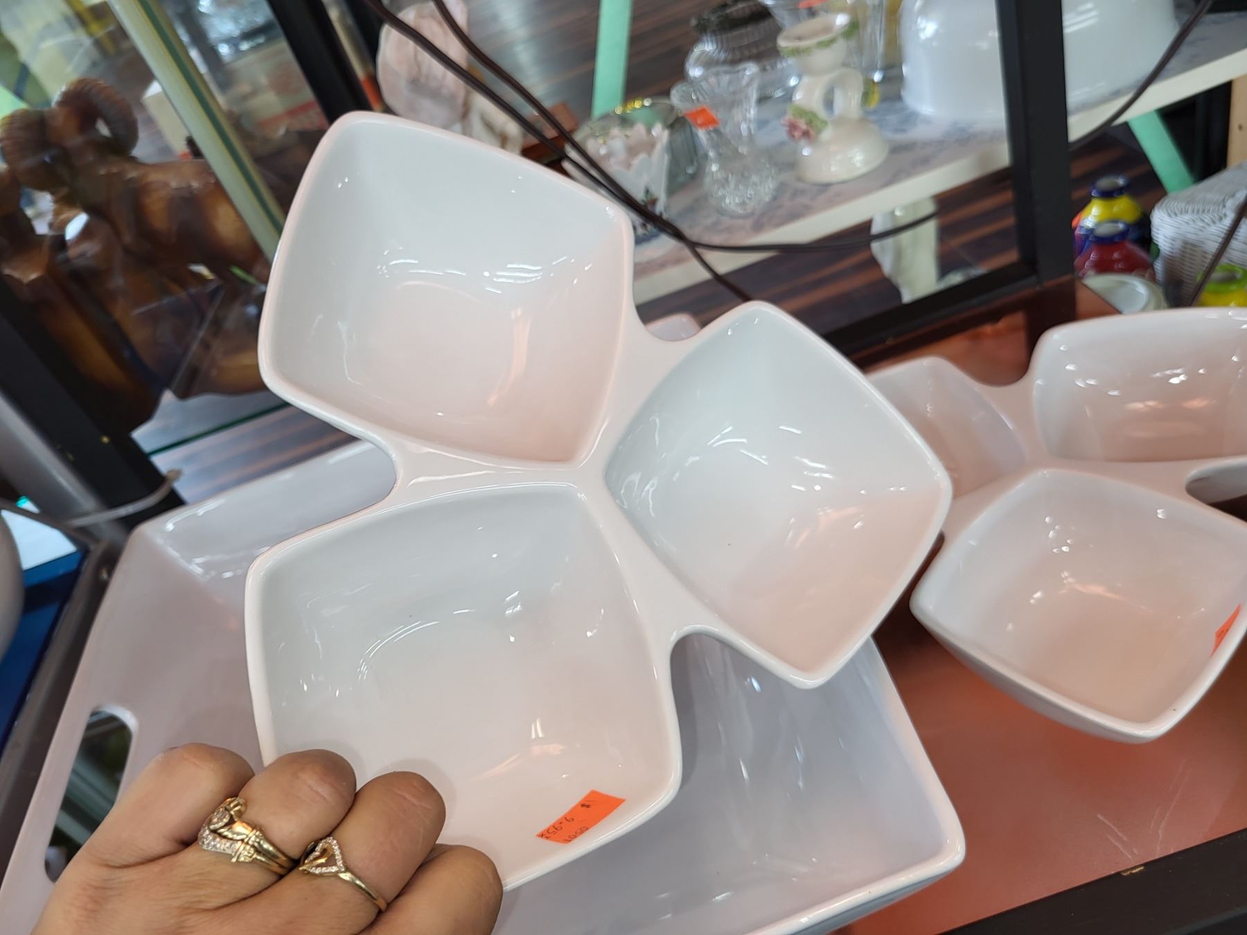 SHELF OF WHIT DISHWARE LOT 4 (3 PIECES)