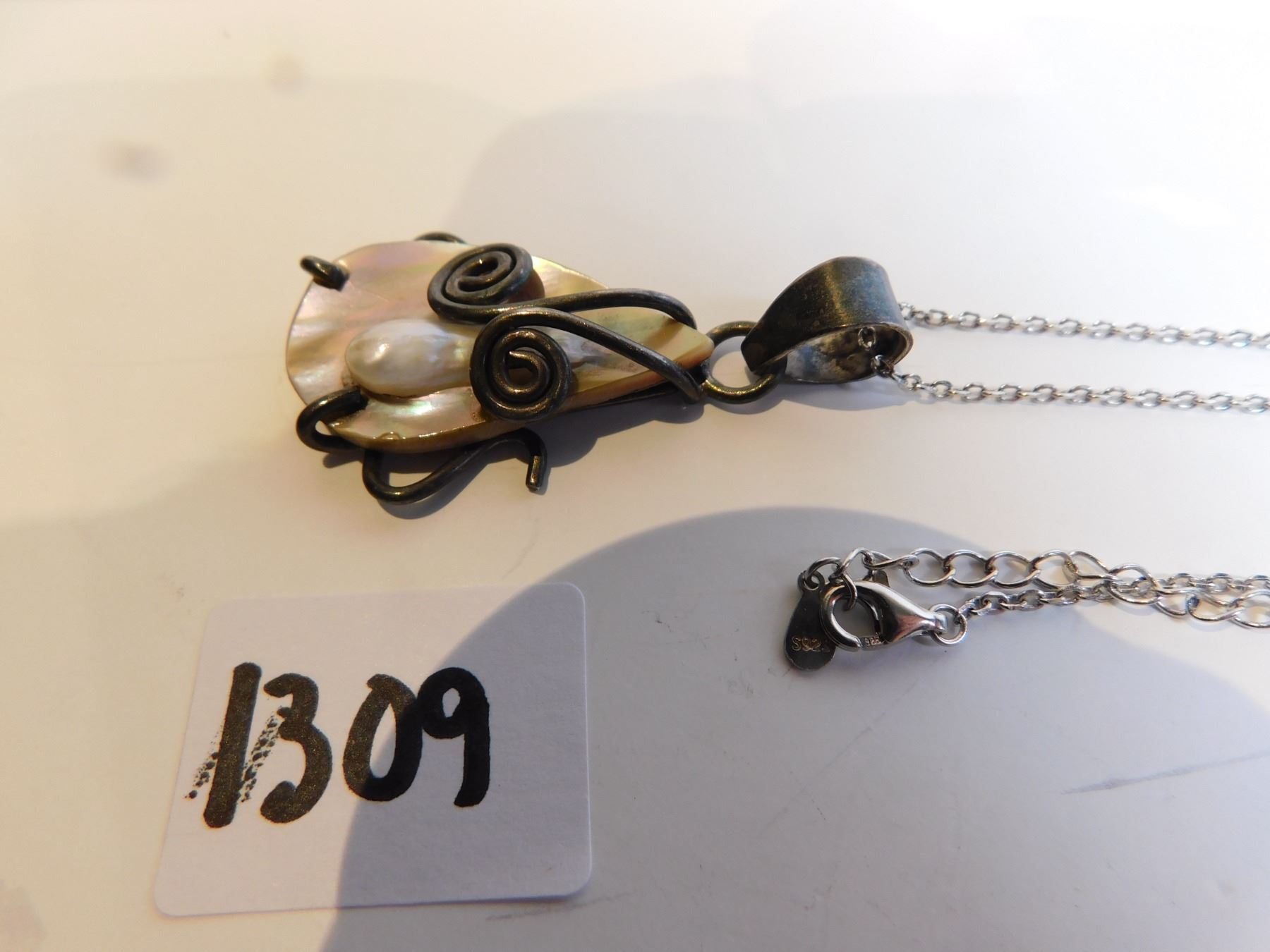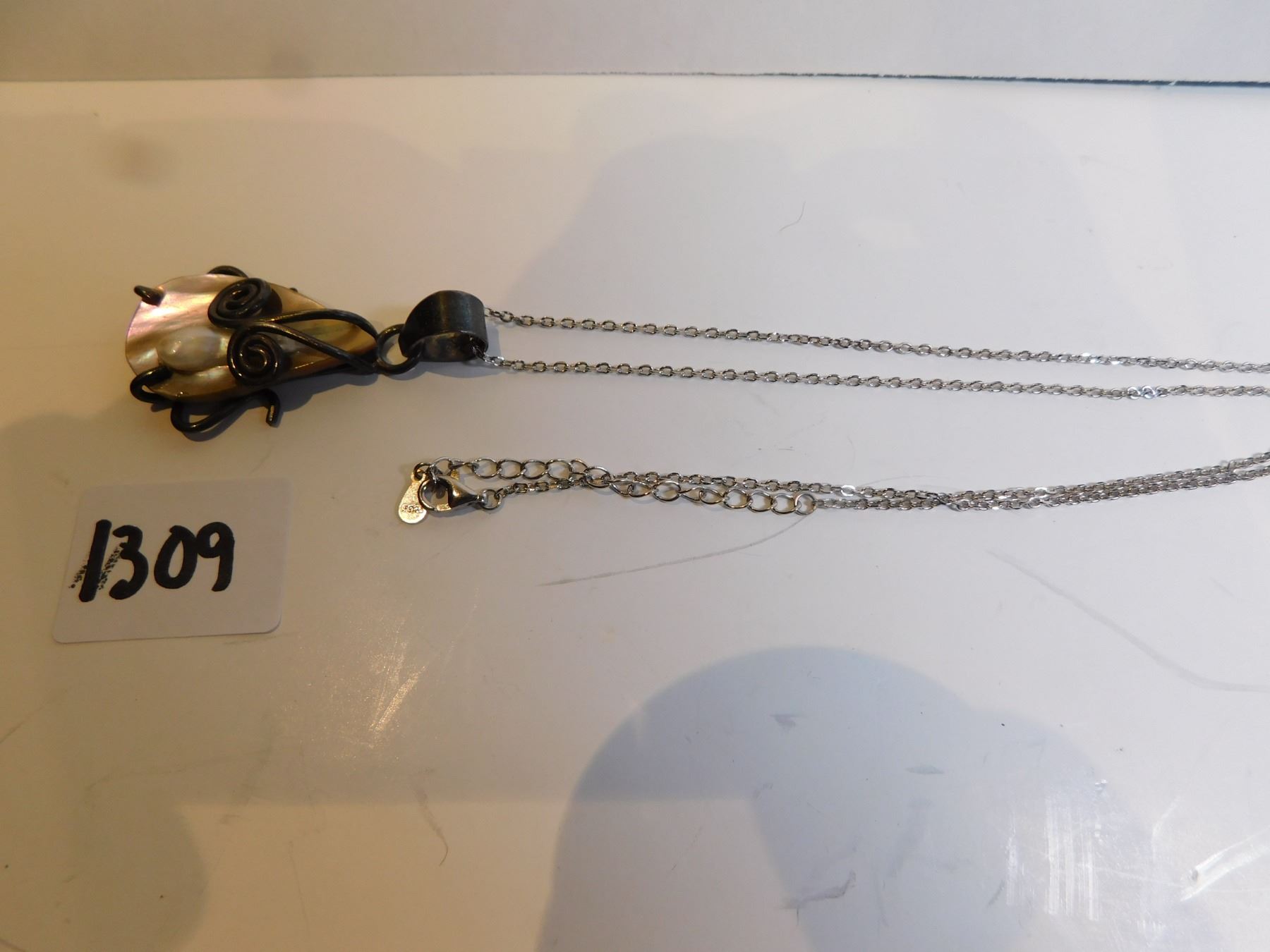 SHELL AND PEARL STERLING PENDANT ON STERLING CHAIN