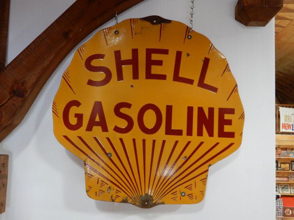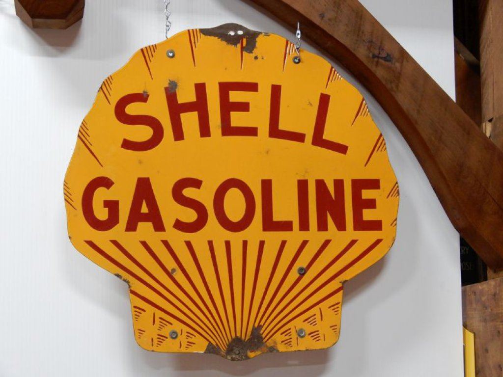 SHELL CLAMSHELL DSP SIGN HEAVILY PORC - 30" X 30" - SOME PORC LOSS LOCATION: UPPER HANGING
