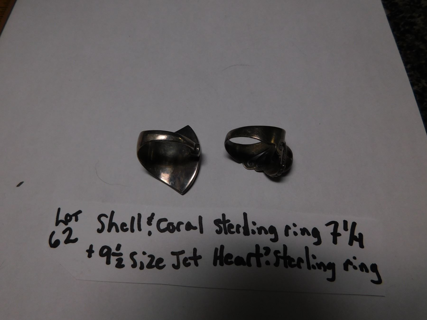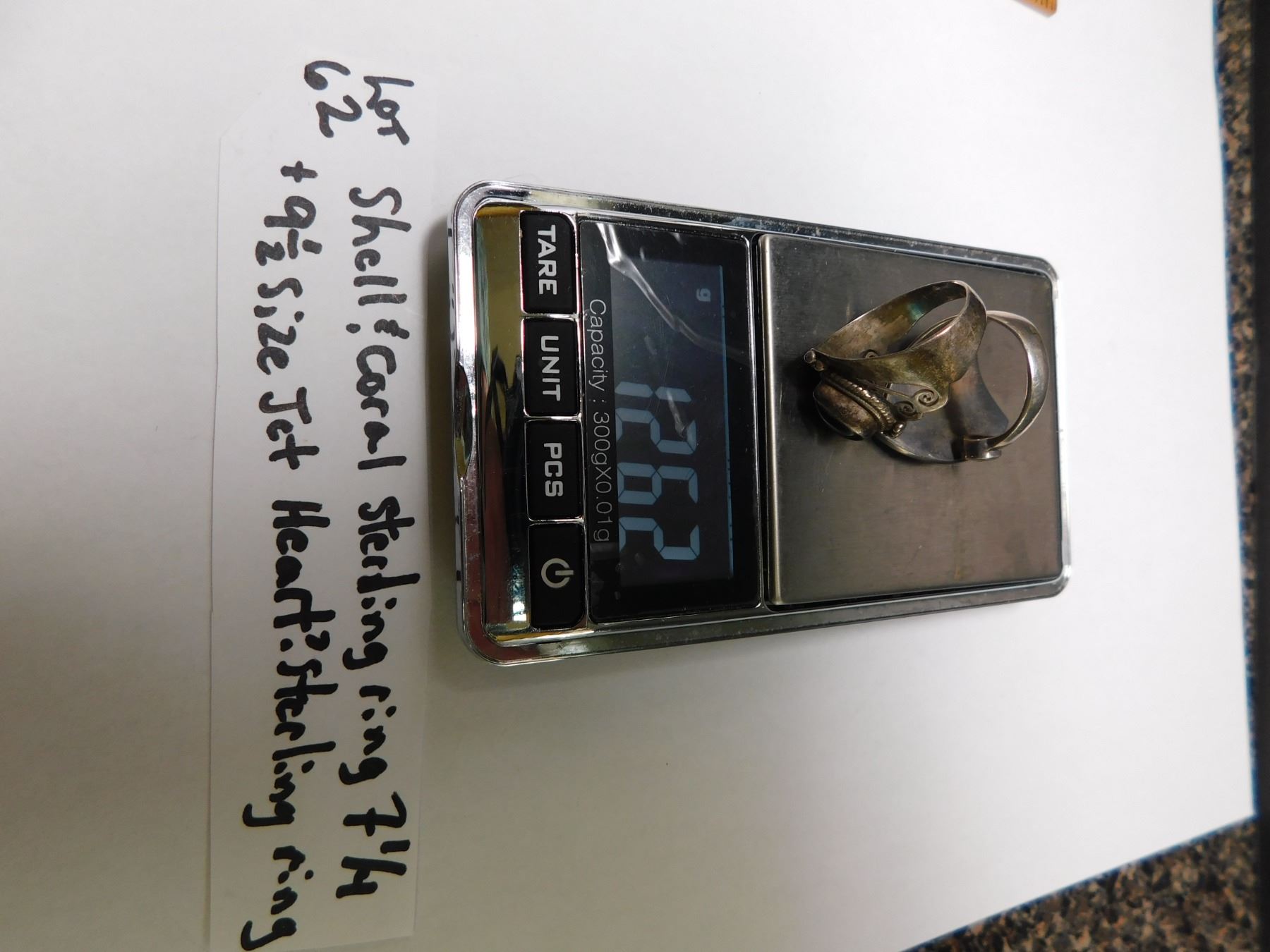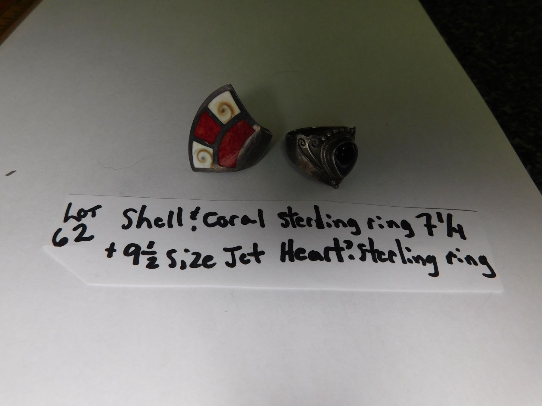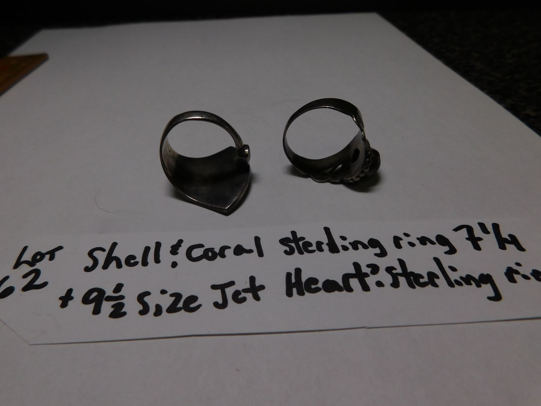 SHELL CORAL AND JETT STERLING SILVER RINGS 12.6 GRAMS