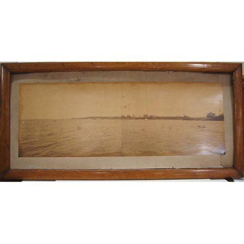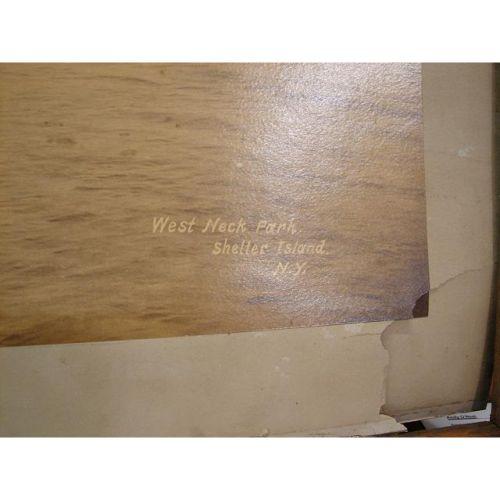 FRAMED SHELTER ISLAND, NEW YORK YARDLONG PHOTOGRAPH. Depicts a shoreline scene of West Neck Park on Shelter Island at the eastern tip of Long Island. Photograph is titled at bottom right “West Neck Park/Shelter Island/N.Y.” Shows tear at bottom right. 23” x 48.5” framed. From the Estate of Delaware Governor & Mrs. Elbert Nostrand Carvel (Governor of Delaware, 1949-1953, 1961-1965).