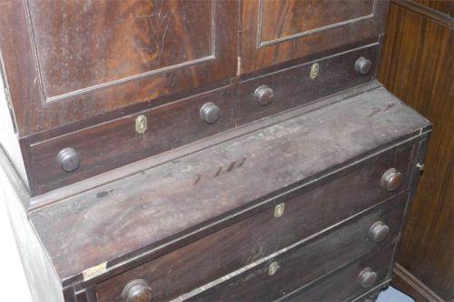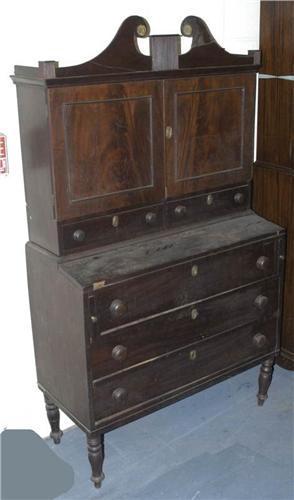 SHERATON MAHOGANY SECRETARY with repaired crest, circa 1830, SHIPPING: See recommended third party shippers. This item can't be packed or shipped by seller.,