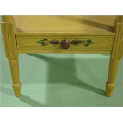 SHERATON NEW ENGLAND PAINT DECORATED WASHSTAND. Paint decorated grape and vine decoration on splash back. Dovetailed galley. 29" H, 17" W, 14.75" D
