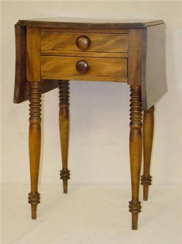 SHERATON WALNUT 2 DRAWER DROPLEAF STAND W/ TURNED LEGS - REFINISHED, IMPERFECTIONS;