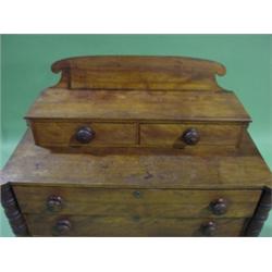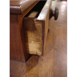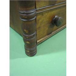 SHERATON WALNUT CHEST. 4 dovetailed drawers. 2 dovetailed handkerchief boxes on top. Cookie corner top. Galley in back. Feet have been cut down. 41.25" H, 43" W, 19.5" D