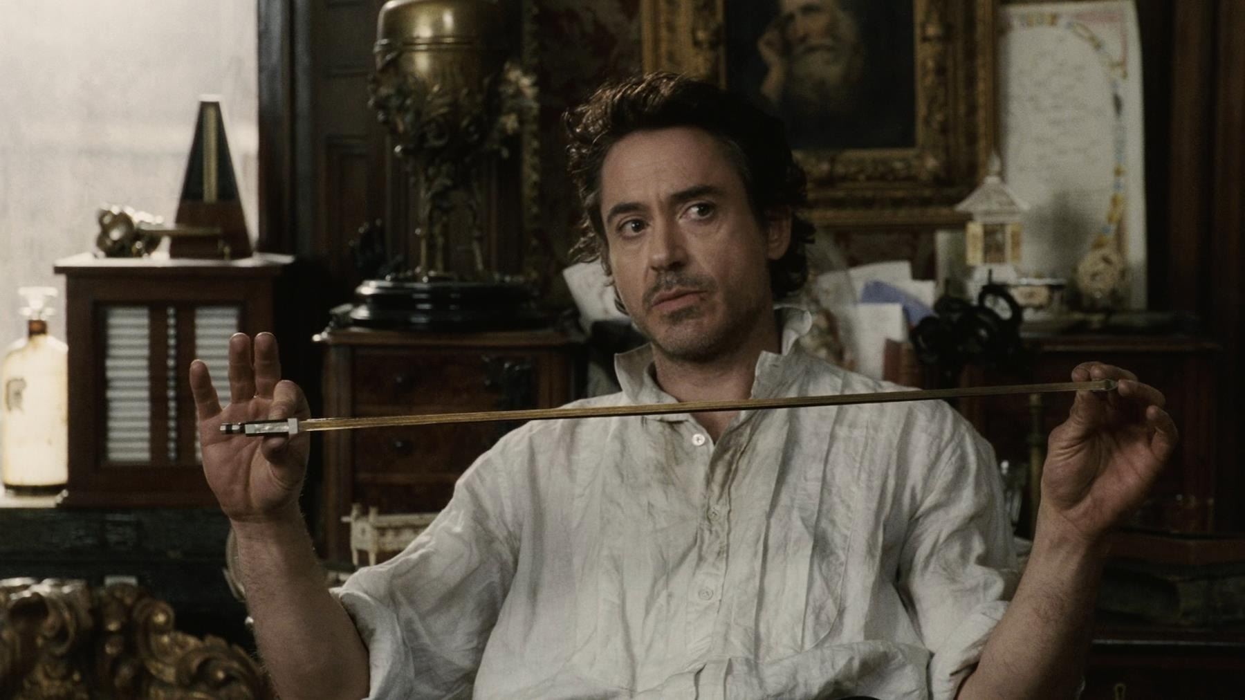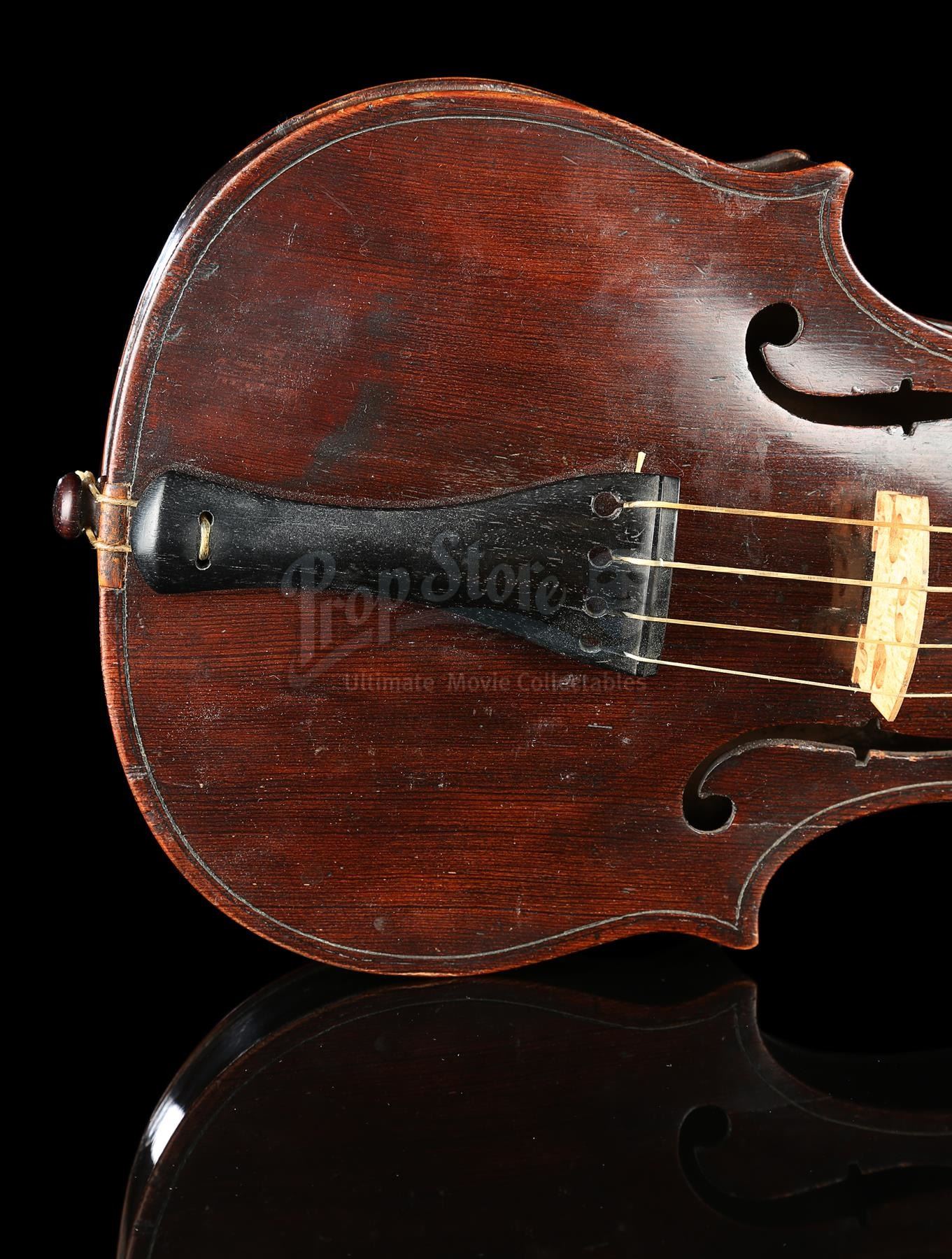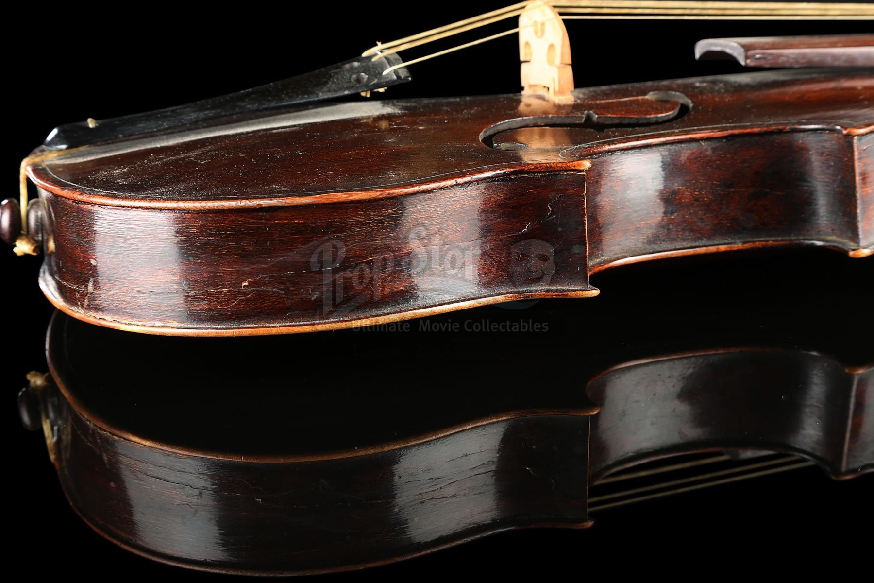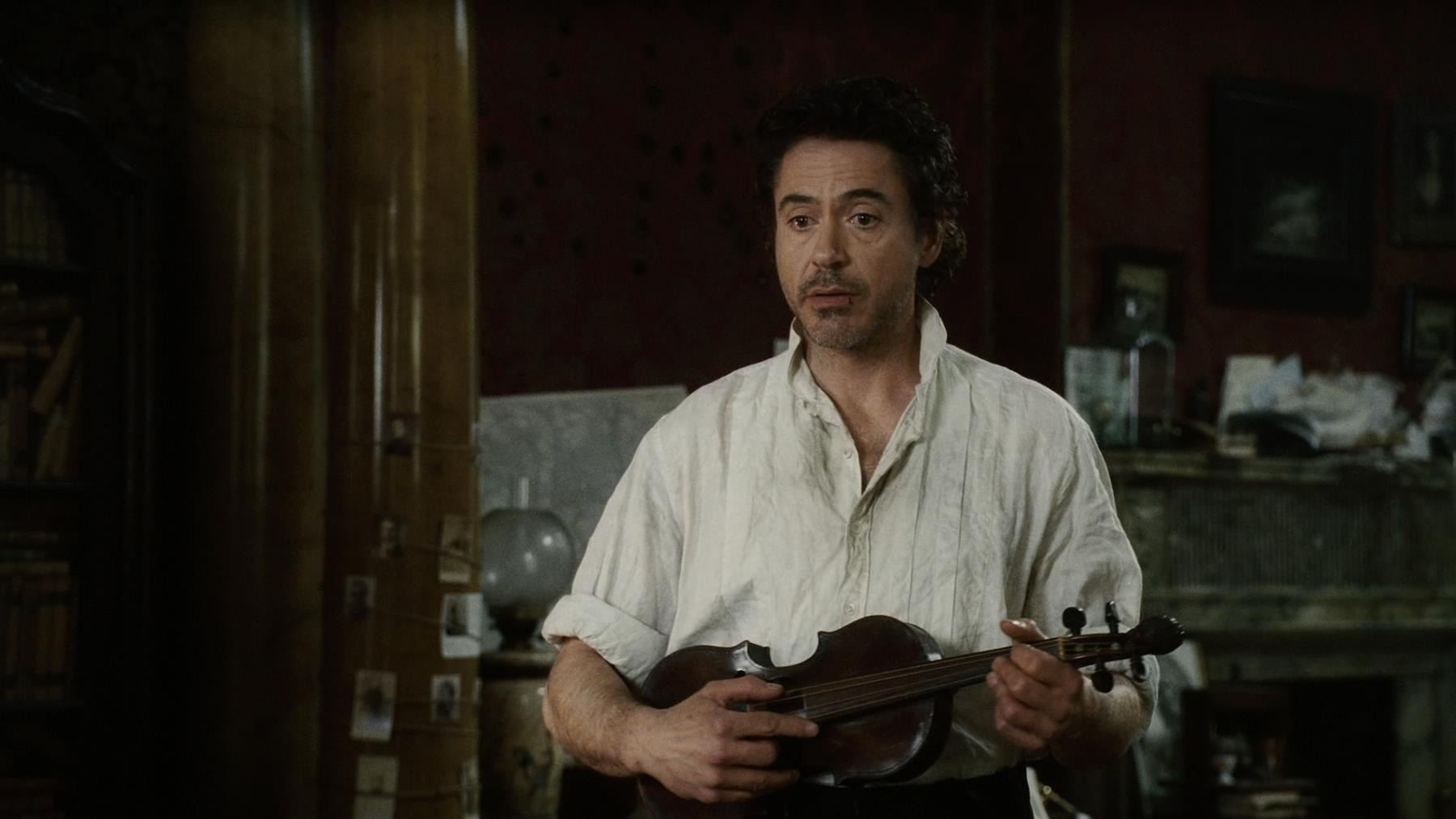 Sherlock Holmes' (Robert Downey Jr.) violin and bow from Guy Ritchie's detective movie Sherlock Holmes. Holmes used his violin in several scenes, including Irene Adler's (Rachel McAdams) visit to request his involvement in a case. The instrument was custom-made for the production and can be screen-matched.