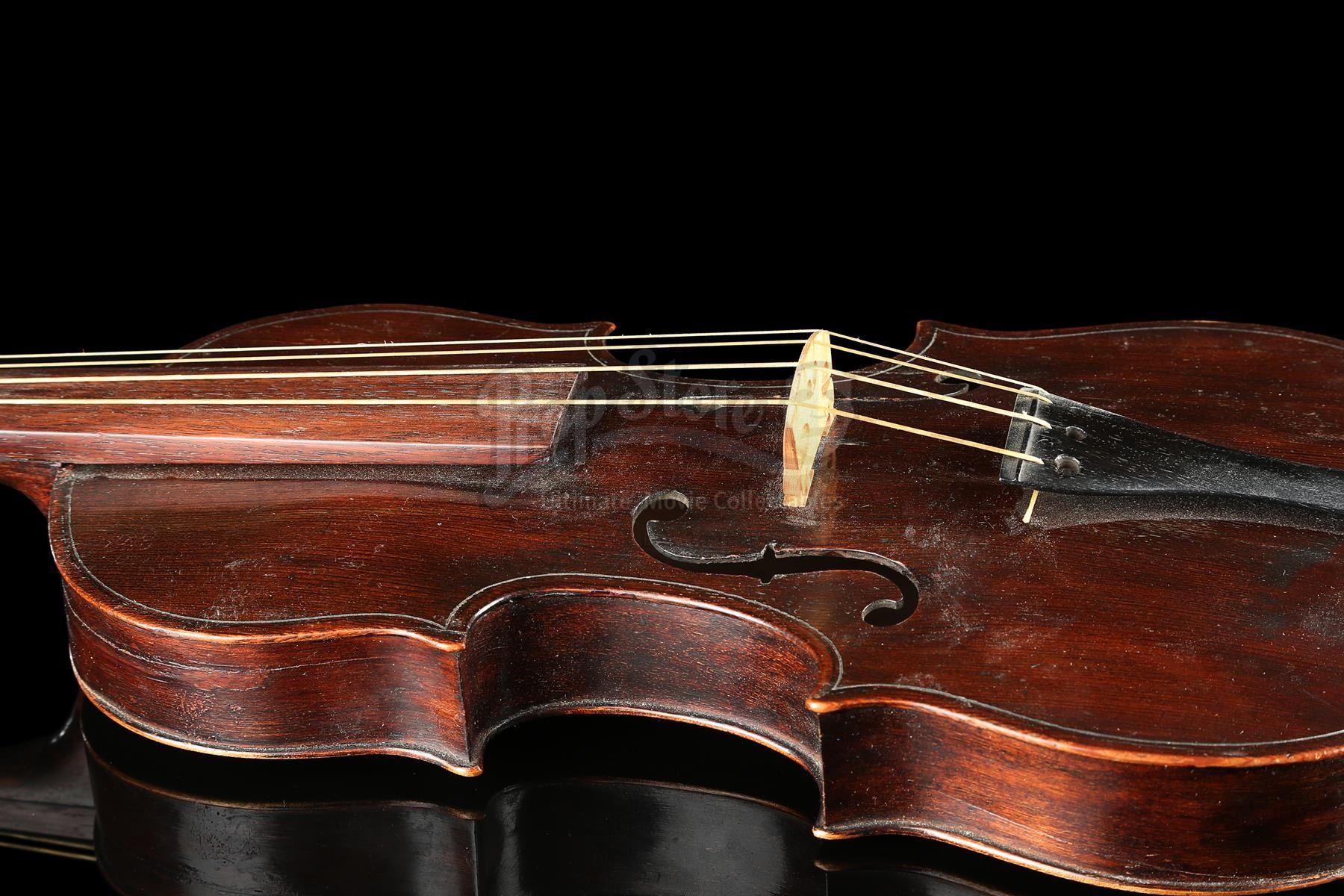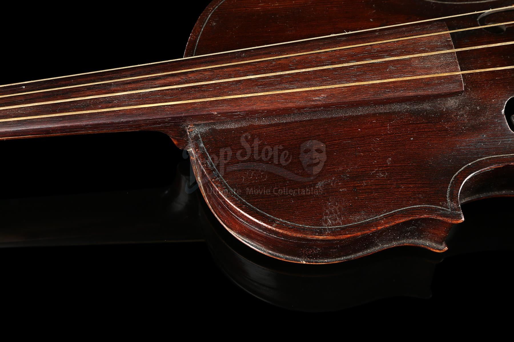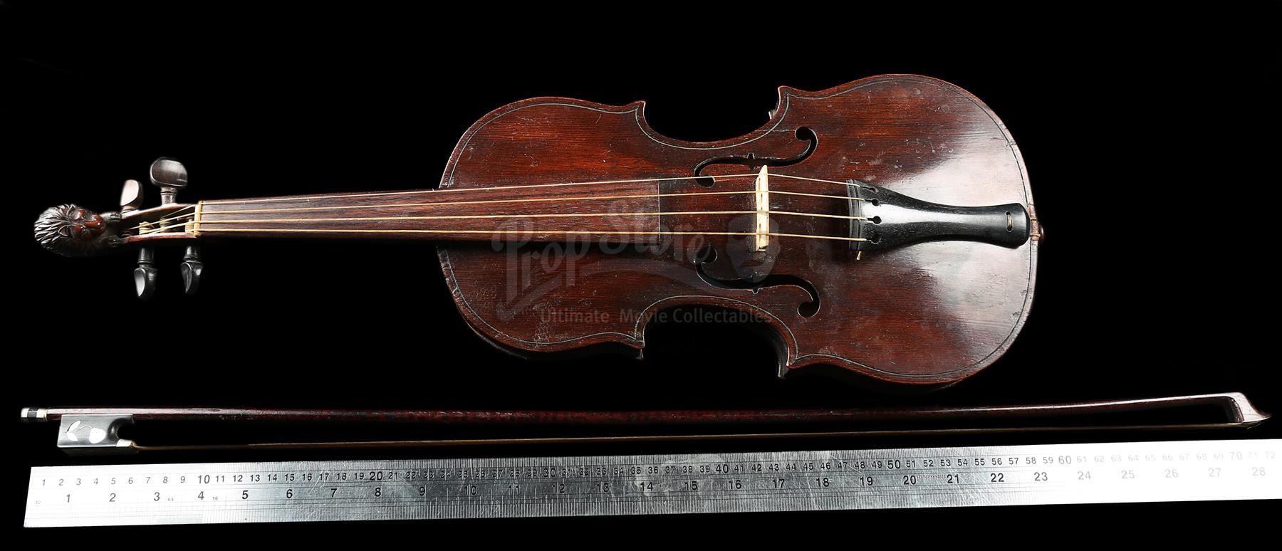 Sherlock Holmes' (Robert Downey Jr.) violin and bow from Guy Ritchie's detective movie Sherlock Holmes. Holmes used his violin in several scenes, including Irene Adler's (Rachel McAdams) visit to request his involvement in a case. The instrument was custom-made for the production and can be screen-matched.