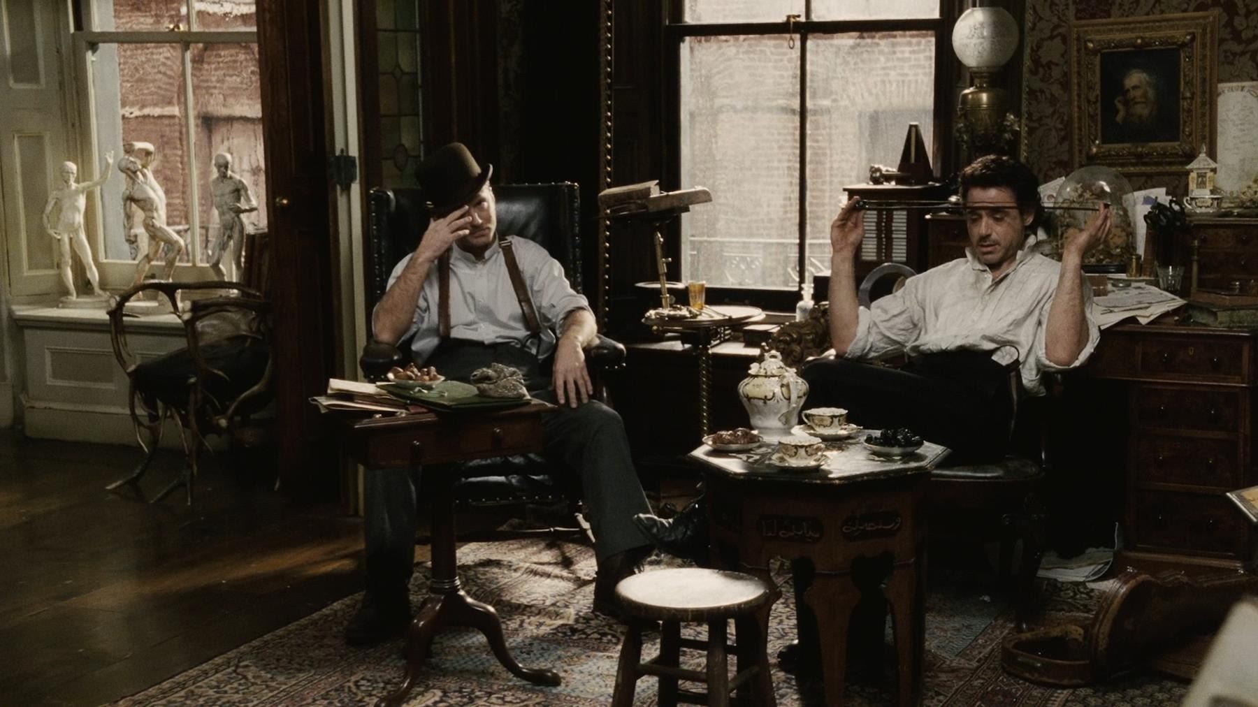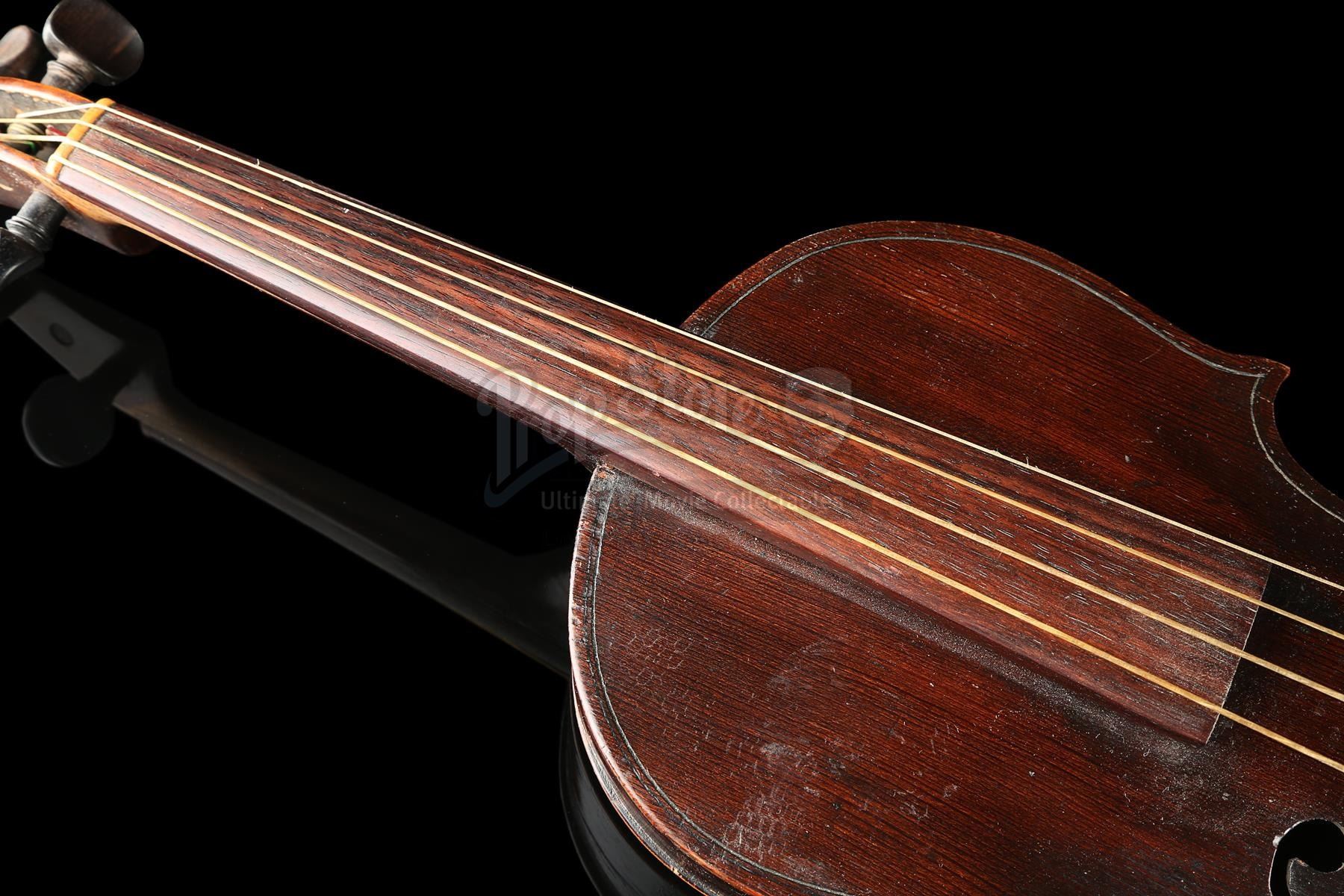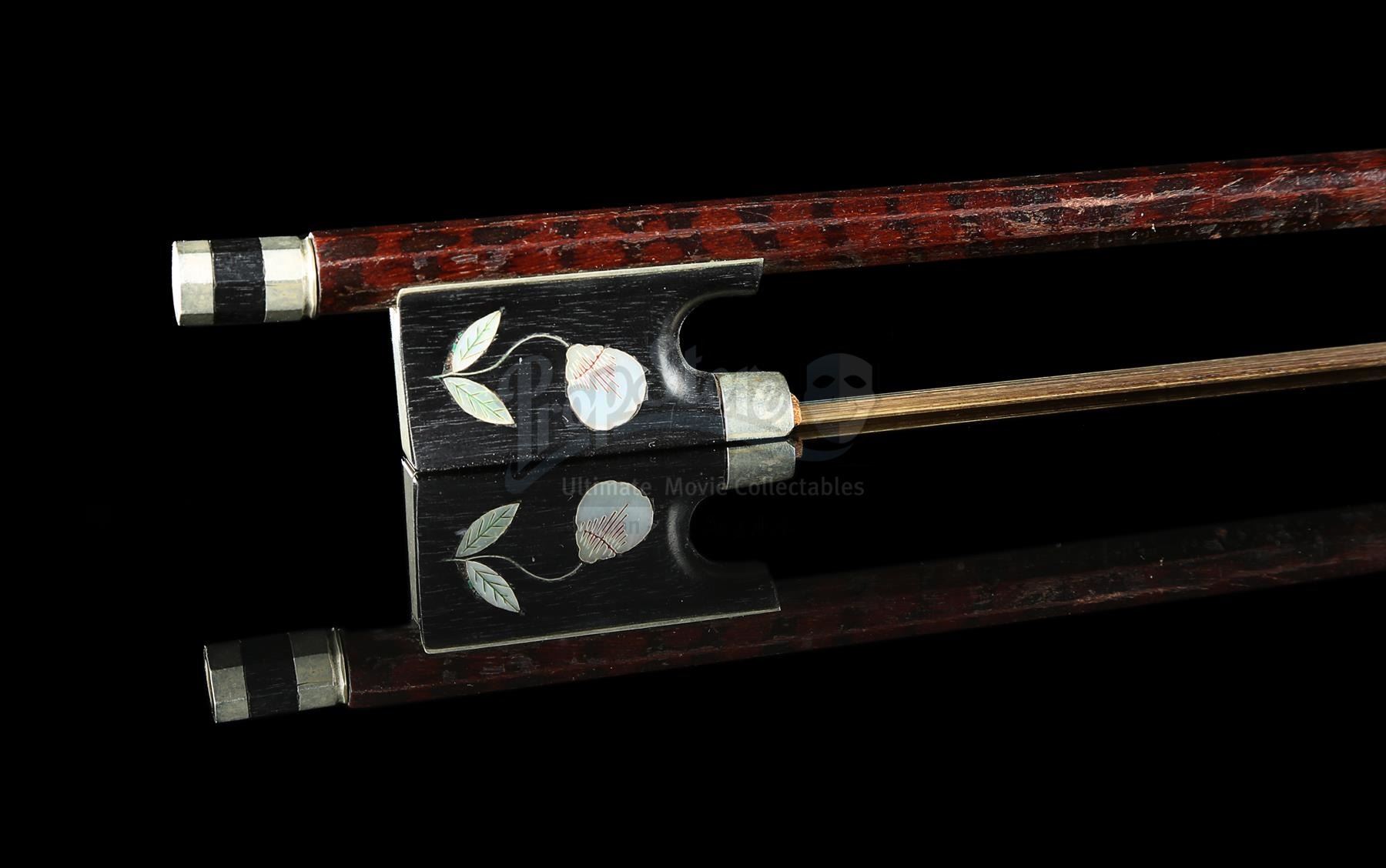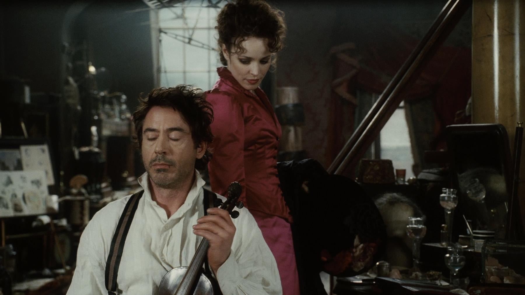 Sherlock Holmes' (Robert Downey Jr.) violin and bow from Guy Ritchie's detective movie Sherlock Holmes. Holmes used his violin in several scenes, including Irene Adler's (Rachel McAdams) visit to request his involvement in a case. The instrument was custom-made for the production and can be screen-matched.