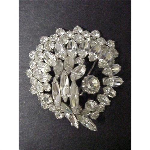 GORGEOUS CLEAR STONES UNUSUAL STYLE as per images , SHERMAN BROOCH, SIGNED - LOVE THE SHAPE,CLEARITY AND HIGH FACETING OF STONES ON THIS BEAUTIFUL PIECE, MEASURES ABOUT 2" X 1 3/4", EXCELLENT CONDITION - US BUYER TO PAY 7.00 FOR SHIPPING PLUS INSURANCE.THANK YOU!