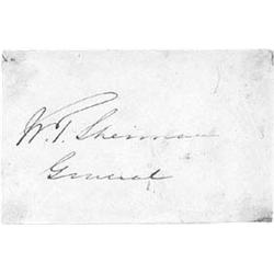 (1820 - 1891) Union major general declared by the press to be ""insane"", he led his army in their March to the Sea, taking Atlanta, Savannah and Columbia along the way. Signature adding ""General"" on a small sheet. Mounting traces to verso and a bit of foxing, otherwise very good.