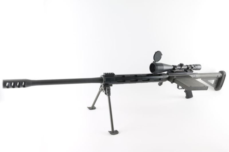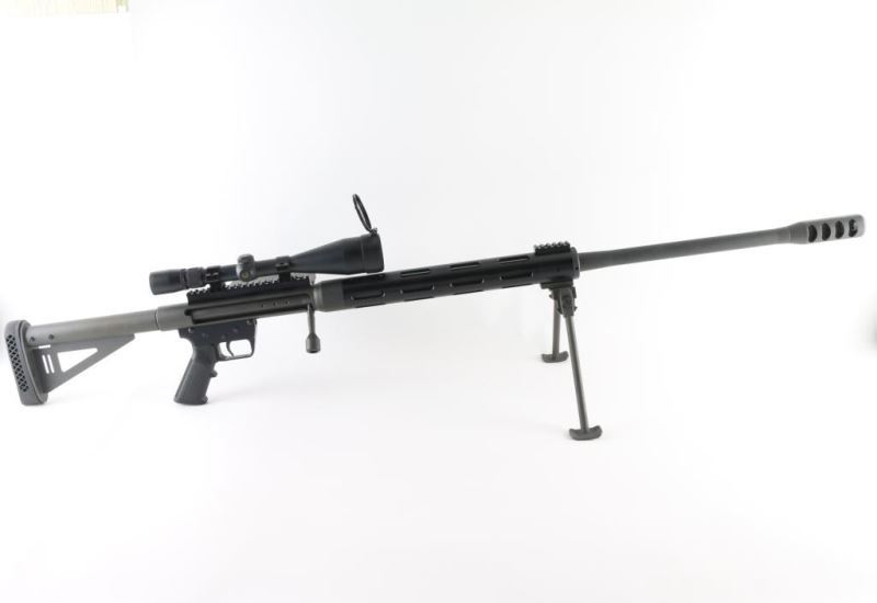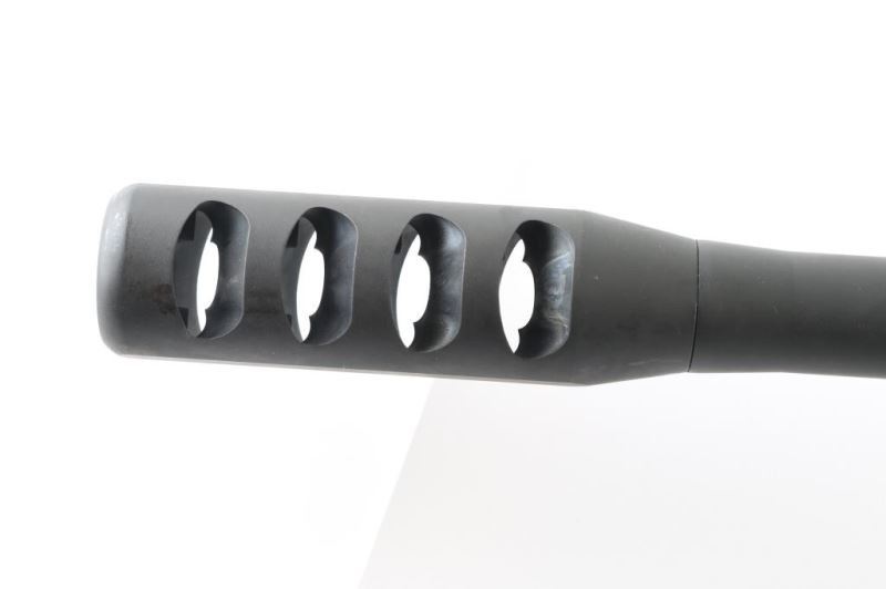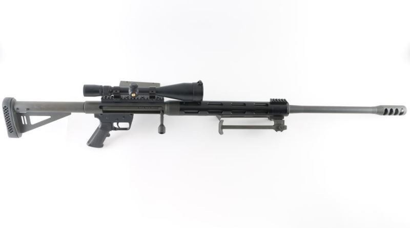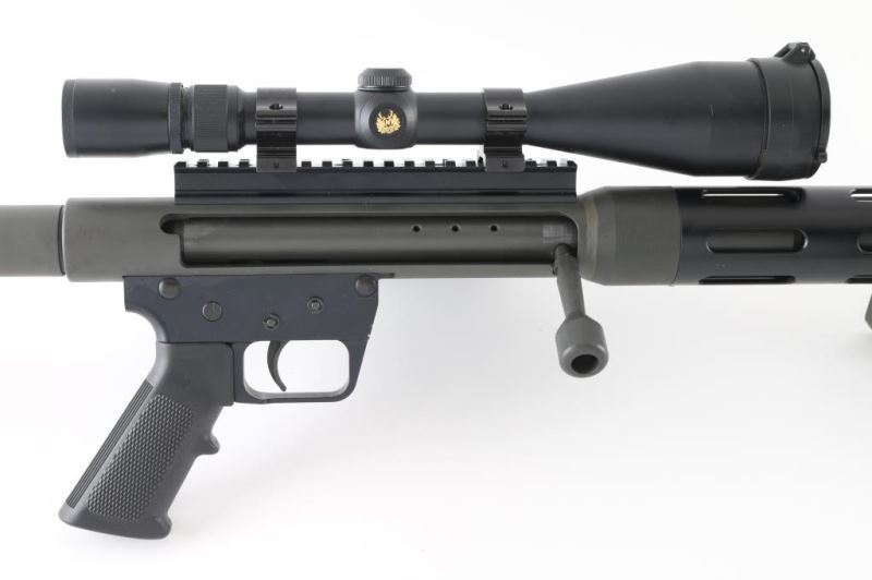 Bolt action rifle features dark gray parkerized finish with some contrasting black painted parts, mostly metal construction with black polymer pistol grip and ventilated rubber recoil pad, 29" barrel, recoil brake, folding bipod, manual safety, side mounted box magazine (appears to be 5 round capacity), Picatinny rail sections on top of receiver and smaller section atop handguard. Bore is very good condition. Condition is excellent with handling marks. Mounts a very good condition Nikon 3.5-10x scope. Includes (1) magazine. Condition is NRA Excellent *** Modern Firearm ***